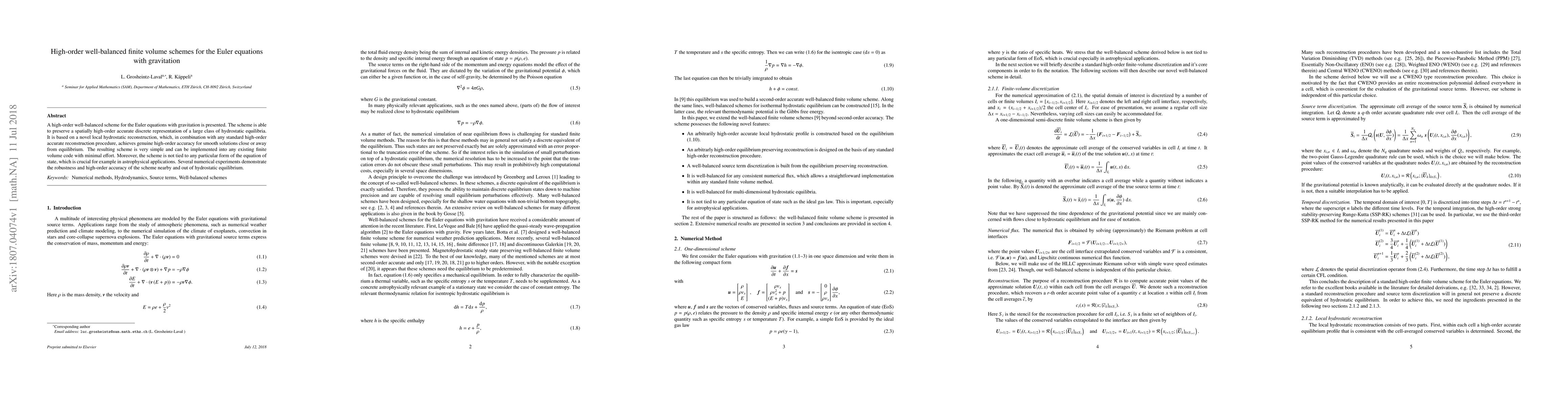 A novel finite volume scheme is presented for solving the Euler equations with gravity, demonstrating high-order accuracy in hydrostatic equilibria and robustness in various numerical experiments.
