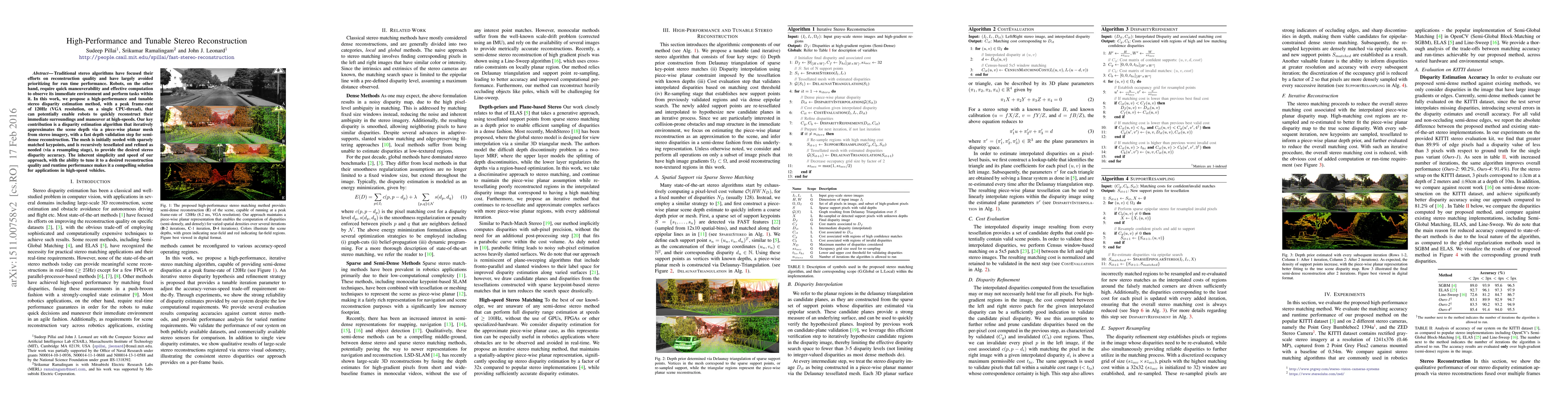 Traditional stereo algorithms have focused their efforts on reconstruction quality and have largely avoided prioritizing for run time performance. Robots, on the other hand, require quick maneuverability and effective computation to observe its immediate environment and perform tasks within it. In this work, we propose a high-performance and tunable stereo disparity estimation method, with a peak frame-rate of 120Hz (VGA resolution, on a single CPU-thread), that can potentially enable robots to quickly reconstruct their immediate surroundings and maneuver at high-speeds. Our key contribution is a disparity estimation algorithm that iteratively approximates the scene depth via a piece-wise planar mesh from stereo imagery, with a fast depth validation step for semi-dense reconstruction. The mesh is initially seeded with sparsely matched keypoints, and is recursively tessellated and refined as needed (via a resampling stage), to provide the desired stereo disparity accuracy. The inherent simplicity and speed of our approach, with the ability to tune it to a desired reconstruction quality and runtime performance makes it a compelling solution for applications in high-speed vehicles.