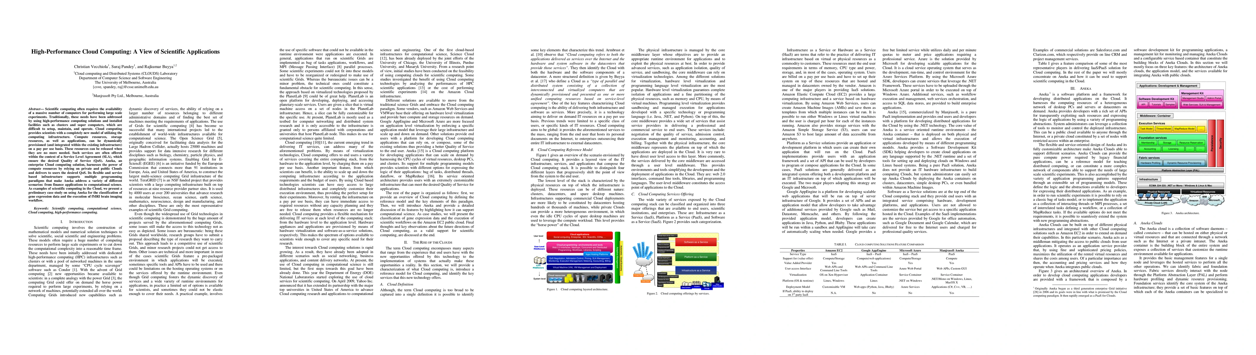 This paper explores the use of cloud computing for scientific applications, highlighting Aneka's ability to dynamically provision resources on a pay-per-use basis. It presents case studies on gene classification and fMRI brain imaging workflows executed on Aneka, demonstrating its flexibility and support for various scientific computing scenarios.