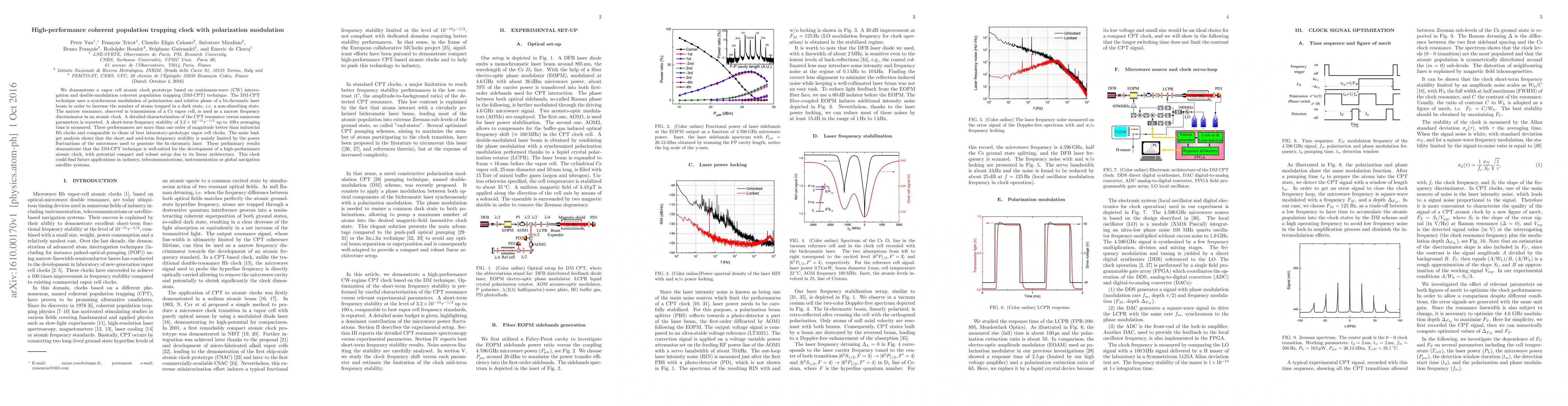 The research presents a vapor cell atomic clock prototype using double-modulation coherent population trapping (DM-CPT) technique, achieving a short-term frequency stability of $3.2 \times 10^{-13} \tau^{-1/2}$ up to 100 s, surpassing industrial Rb clocks and rivaling the best laboratory prototypes. The method promises compact and robust performance, suitable for various applications.