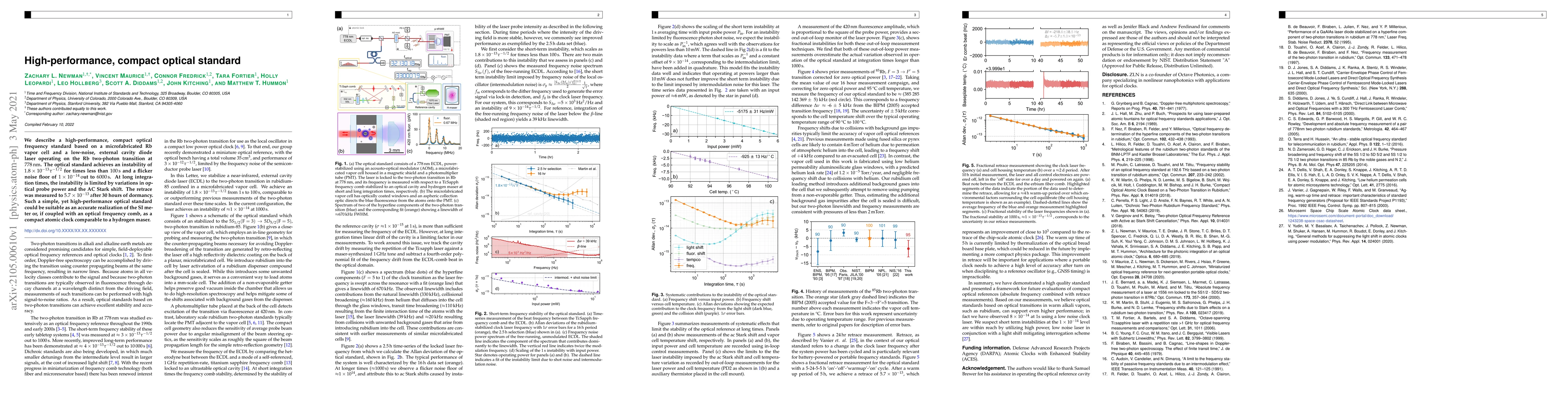 We describe a high-performance, compact optical frequency standard based on a microfabricated Rb vapor cell and a low-noise, external cavity diode laser operating on the Rb two-photon transition at 778 nm. The optical standard achieves an instability of 1.8x10$^{-13}$/$\sqrt{\tau}$ for times less than 100 s and a flicker noise floor of 1x10$^{-14}$ out to 6000 s. At long integration times, the instability is limited by variations in optical probe power and the AC Stark shift. The retrace was measured to 5.7x10$^{-13}$ after 30 hours of dormancy. Such a simple, yet high-performance optical standard could be suitable as an accurate realization of the SI meter or, if coupled with an optical frequency comb, as a compact atomic clock comparable to a hydrogen maser.