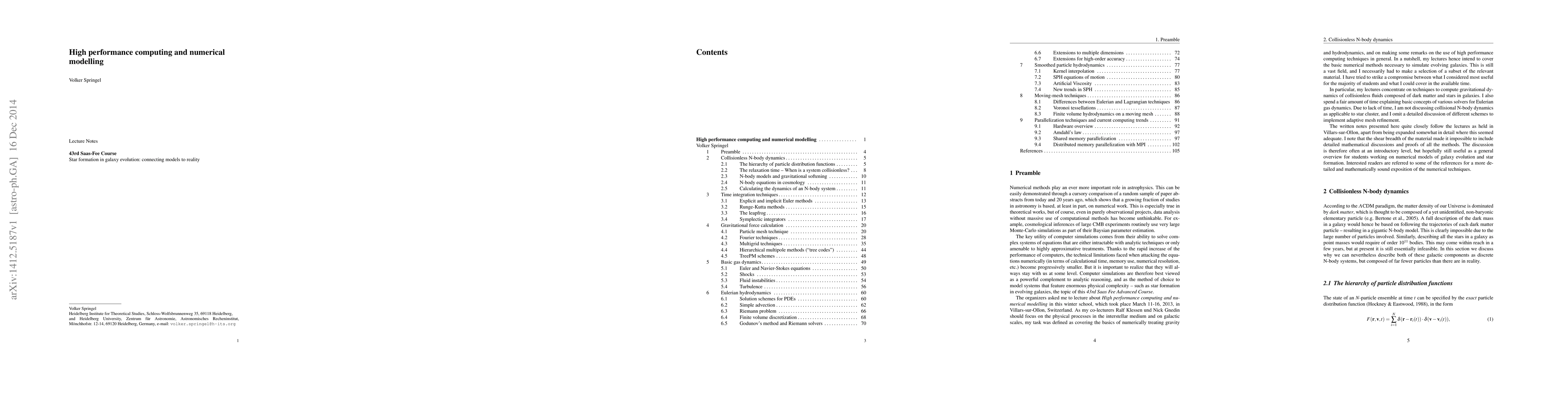 Numerical methods play an ever more important role in astrophysics. This is especially true in theoretical works, but of course, even in purely observational projects, data analysis without massive use of computational methods has become unthinkable. The key utility of computer simulations comes from their ability to solve complex systems of equations that are either intractable with analytic techniques or only amenable to highly approximative treatments. Simulations are best viewed as a powerful complement to analytic reasoning, and as the method of choice to model systems that feature enormous physical complexity such as star formation in evolving galaxies, the topic of this 43rd Saas Fee Advanced Course. The organizers asked me to lecture about high performance computing and numerical modelling in this winter school, and to specifically cover the basics of numerically treating gravity and hydrodynamics in the context of galaxy evolution. This is still a vast field, and I necessarily had to select a subset of the relevant material. The written notes presented here quite closely follow the lectures as held in Villars-sur-Ollon, which were meant to provide a general overview about some of the most pertinent techniques that may be relevant for students working on numerical models of galaxy evolution and star formation. The discussion is hence often at an introductory level, giving precedence to a presentation of the main numerical concepts rather than to a mathematically detailed exposition of the techniques.