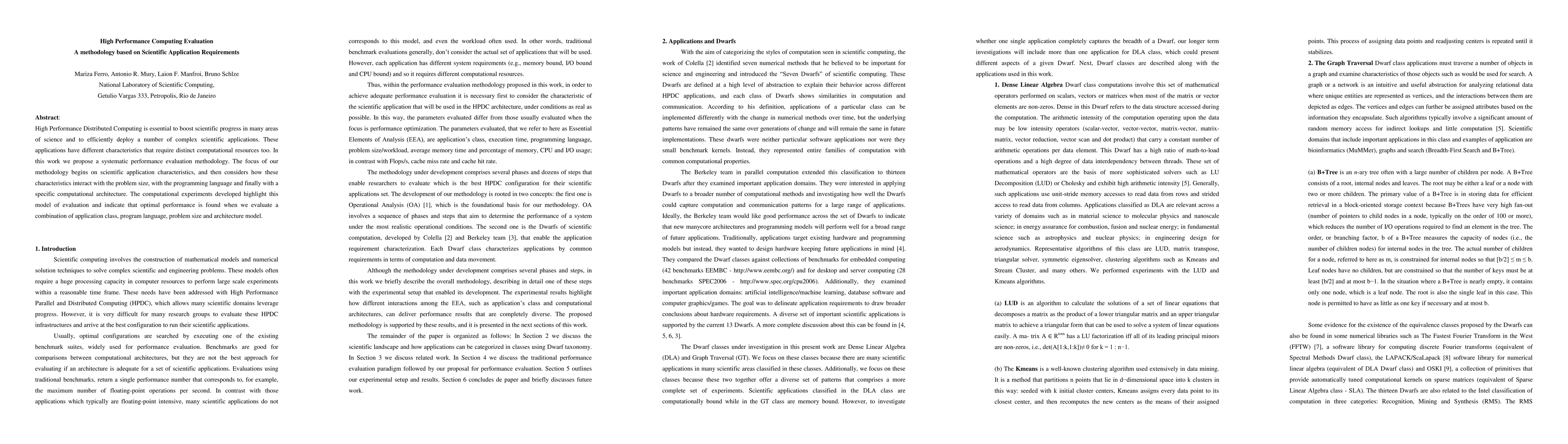 This paper proposes a systematic methodology for evaluating the performance of high-performance distributed computing based on scientific application characteristics. The methodology highlights that optimal performance is achieved by considering the interplay between application class, programming language, problem size, and computational architecture.