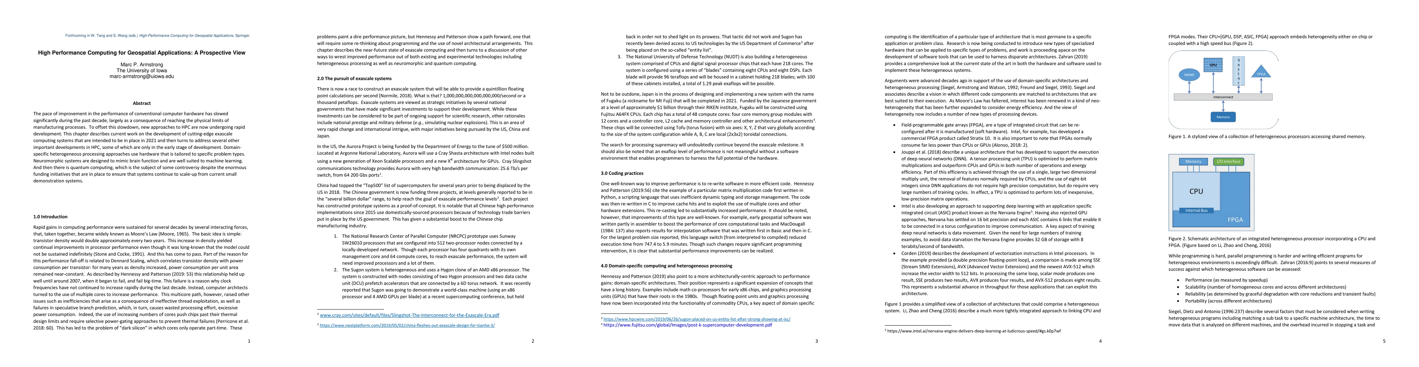 This paper discusses the stagnation in conventional computer hardware performance and explores emerging high-performance computing (HPC) approaches, including exascale systems, domain-specific heterogeneous processing, neuromorphic systems for machine learning, and the controversial yet highly funded quantum computing.