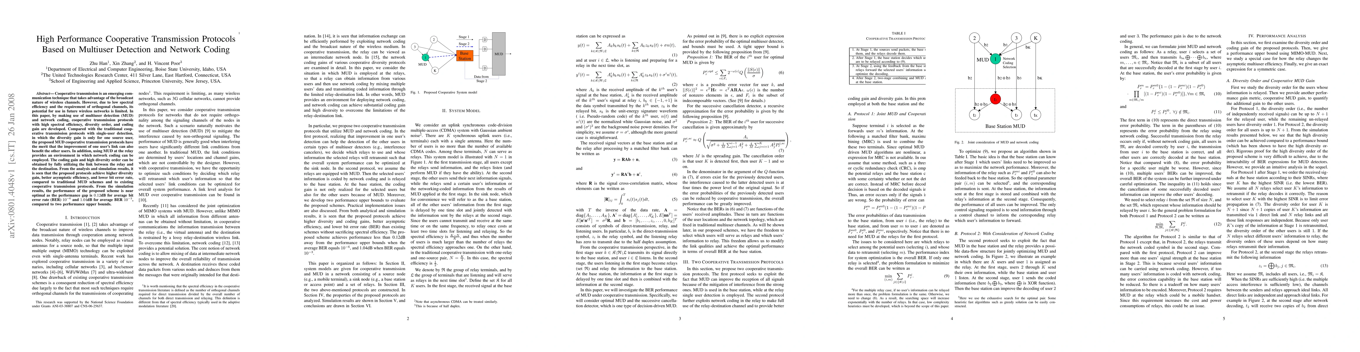 This paper proposes high-performance cooperative transmission protocols leveraging multiuser detection (MUD) and network coding to enhance spectral efficiency, diversity order, and coding gain. The developed protocols outperform traditional single-user detection methods by providing mutual benefits among users and achieving near-optimal performance with lower bit error rates.