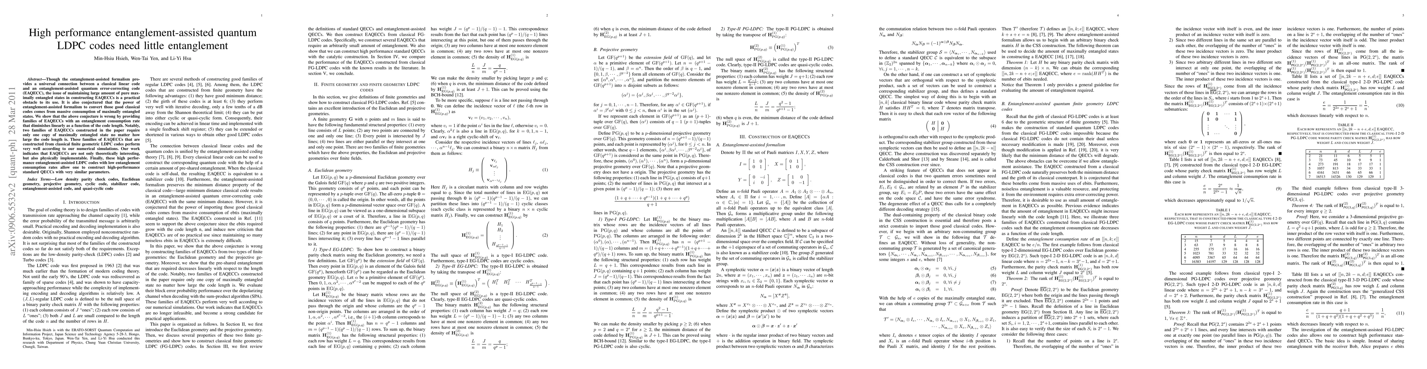 This paper demonstrates that entanglement-assisted quantum LDPC codes can achieve high performance with minimal entanglement consumption, refuting the conjecture that large amounts of maximally entangled states are necessary. The authors present two families of EAQECCs requiring only one copy of such states regardless of code length, showing they are both theoretically sound and practically implementable.