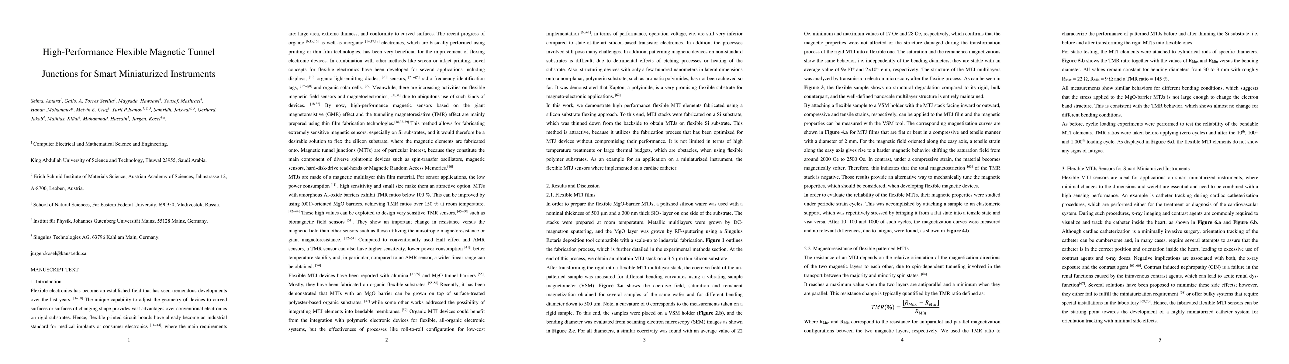 Flexible electronics is an emerging field in many applications ranging from in vivo biomedical devices to wearable smart systems. The capability of conforming to curved surfaces opens the door to add electronic components to miniaturized instruments, where size and weight are critical parameters. Given their prevalence on the sensors market, flexible magnetic sensors play a major role in this progress. For many high-performance applications, magnetic tunnel junctions (MTJs) have become the first choice, due to their high sensitivity, low power consumption etc. MTJs are also promising candidates for non-volatile next-generation data storage media and, hence, could become central components of wearable electronic devices. In this work, a generic low-cost regenerative batch fabrication process is utilized to transform rigid MTJs on a 500 {\mu}m silicon wafer substrate into 5 {\mu}m thin, mechanically flexible silicon devices, and ensuring optimal utilization of the whole substrate. This method maintains the outstanding magnetic properties, which are only obtained by deposition of the MTJ on smooth high-quality silicon wafers. The flexible MTJs are highly reliable and resistive to mechanical stress. Bending of the MTJ stacks with a diameter as small as 500 {\mu}m is possible without compromising their performance and an endurance of over 1000 cycles without fatigue has been demonstrated. The flexible MTJs were mounted onto the tip of a cardiac catheter with 2 mm in diameter without compromising their performance. This enables the detection of magnetic fields and the angle which they are applied at with a high sensitivity of 4.93 %/Oe and a low power consumption of 0.15 {\mu}W, while adding only 8 {\mu}g and 15 {\mu}m to the weight and diameter of the catheter, respectively.