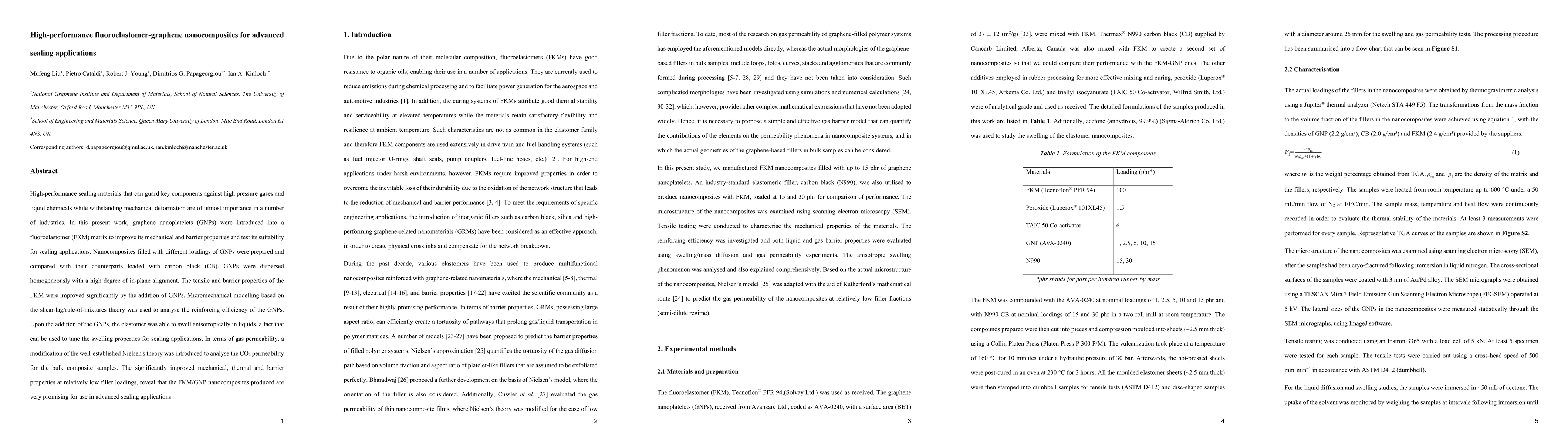 This research develops high-performance fluoroelastomer-graphene nanocomposites that significantly enhance mechanical and barrier properties, making them suitable for advanced sealing applications. The graphene nanoplatelets improve tensile strength and gas permeability, with micromechanical modelling confirming the reinforcing efficiency.