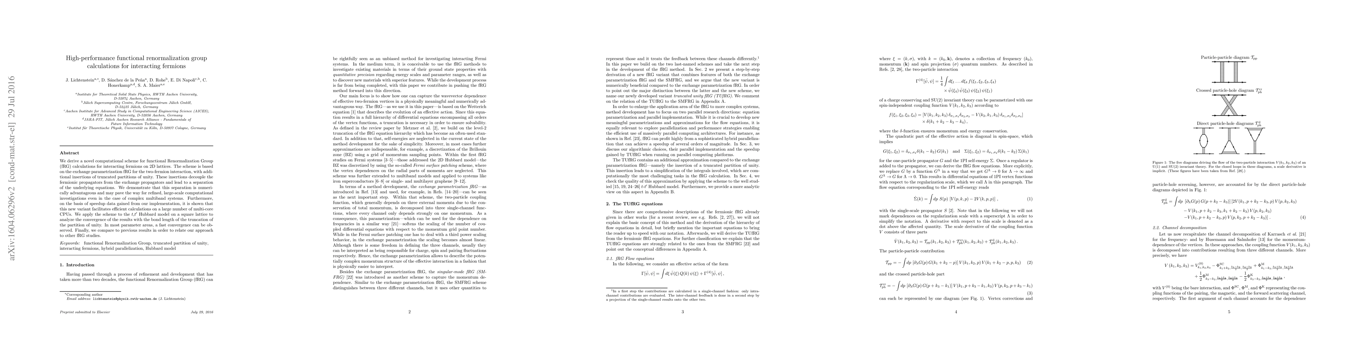 This paper introduces a novel computational scheme for functional Renormalization Group (fRG) calculations for interacting fermions, utilizing exchange parametrization and truncated partitions of unity to decouple propagators. The method demonstrates numerical advantages and efficient scalability on multi-core CPUs, as shown through its application to the $t$,$t'$ Hubbard model.