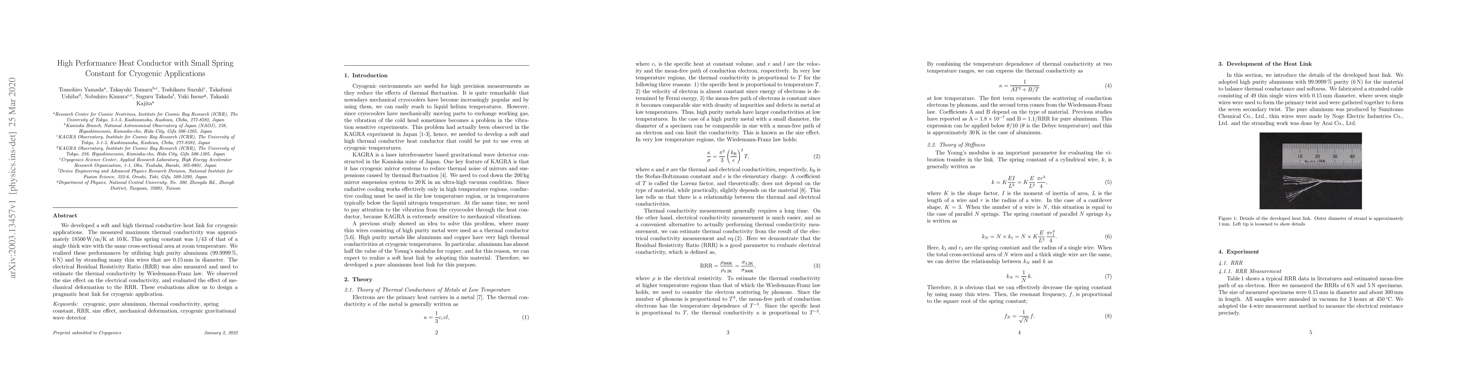 Researchers developed a heat link with high thermal conductivity (18500 W/m/K) and low spring constant for cryogenic applications, outperforming similar wires at room temperature. The design allows for efficient heat transfer while minimizing mechanical deformation.