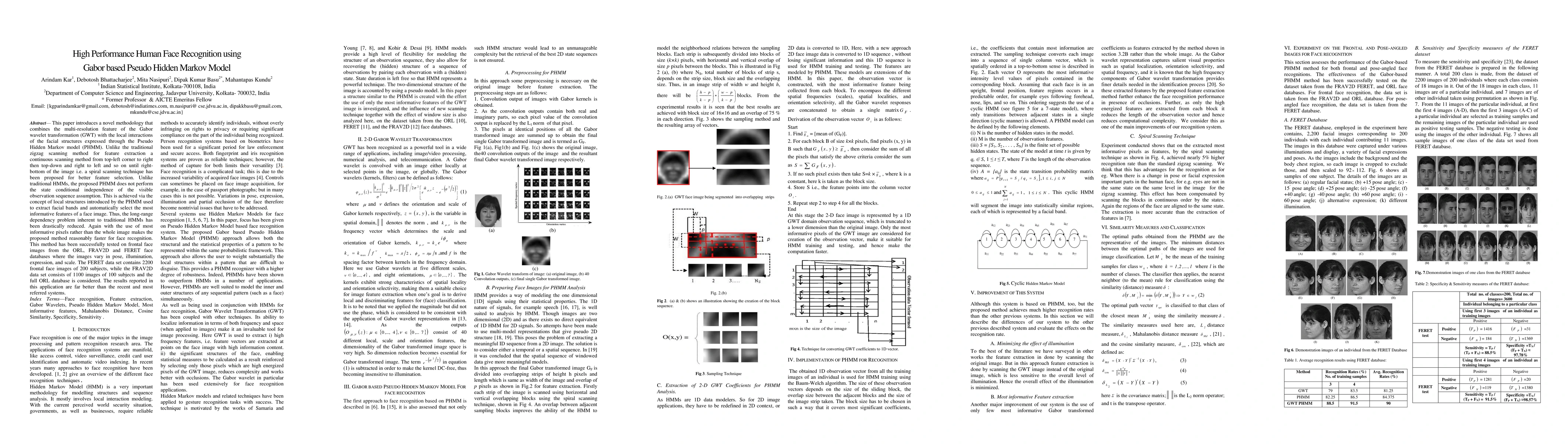 This paper proposes a high-performance human face recognition method combining Gabor wavelet transformation with a Pseudo Hidden Markov Model, utilizing a spiral scanning technique for feature extraction. This approach reduces the long-range dependency problem and improves recognition accuracy, outperforming recent systems on multiple face databases.