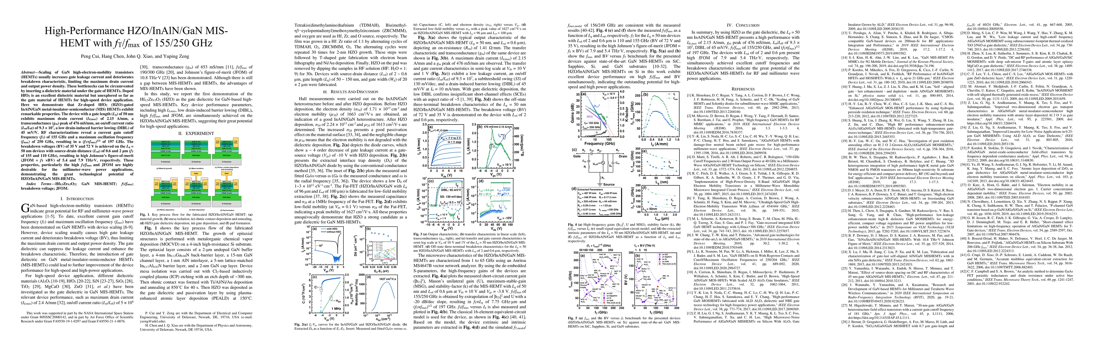 This paper demonstrates high-performance HZO/InAlN/GaN MIS-HEMTs with a gate length of 50 nm, achieving a current gain cutoff frequency (fT) of 155 GHz and a maximum oscillation frequency (fmax) of 250 GHz, showcasing significant potential for millimeter-wave power applications.