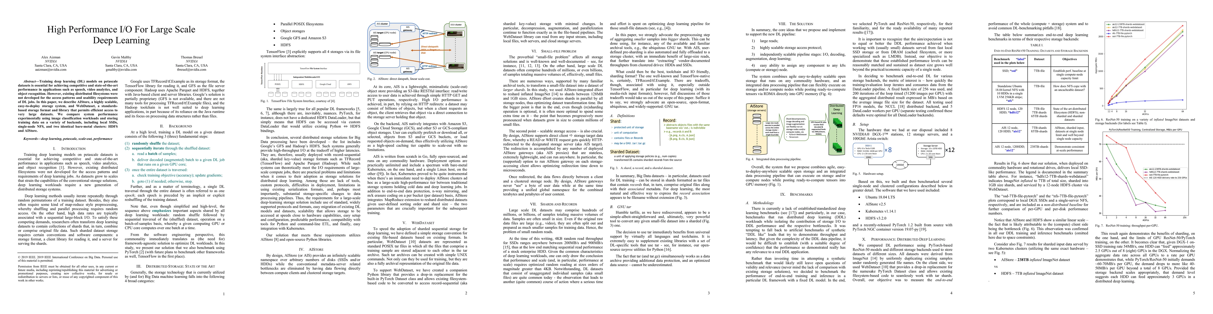 This paper introduces AIStore, a scalable storage system, and WebDataset, a format and library for handling large datasets efficiently in deep learning. Experimental results show improved performance in image classification tasks when using AIStore compared to traditional filesystems like HDFS and NFS.