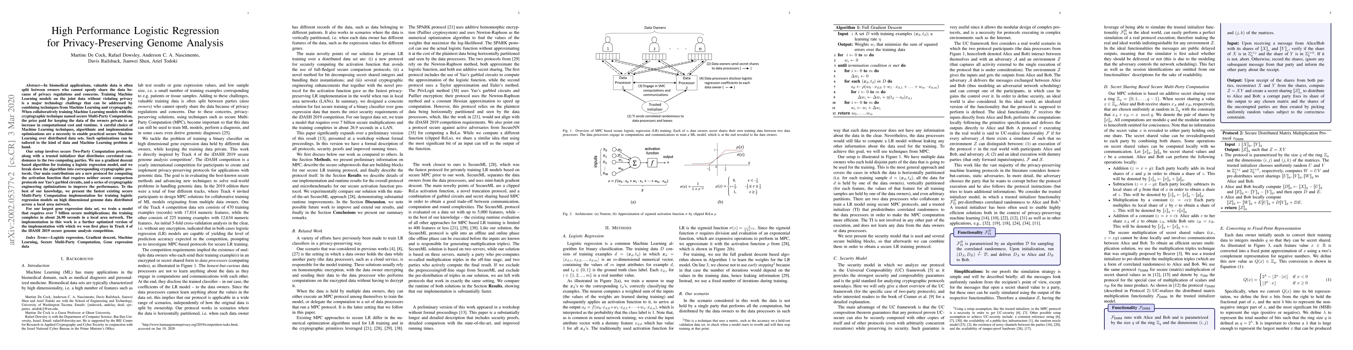 Researchers developed a secure logistic regression training protocol for analyzing genome data while preserving user privacy. Their implementation achieved the fastest known secure multi-party computation for training logistic regression models on high-dimensional data.