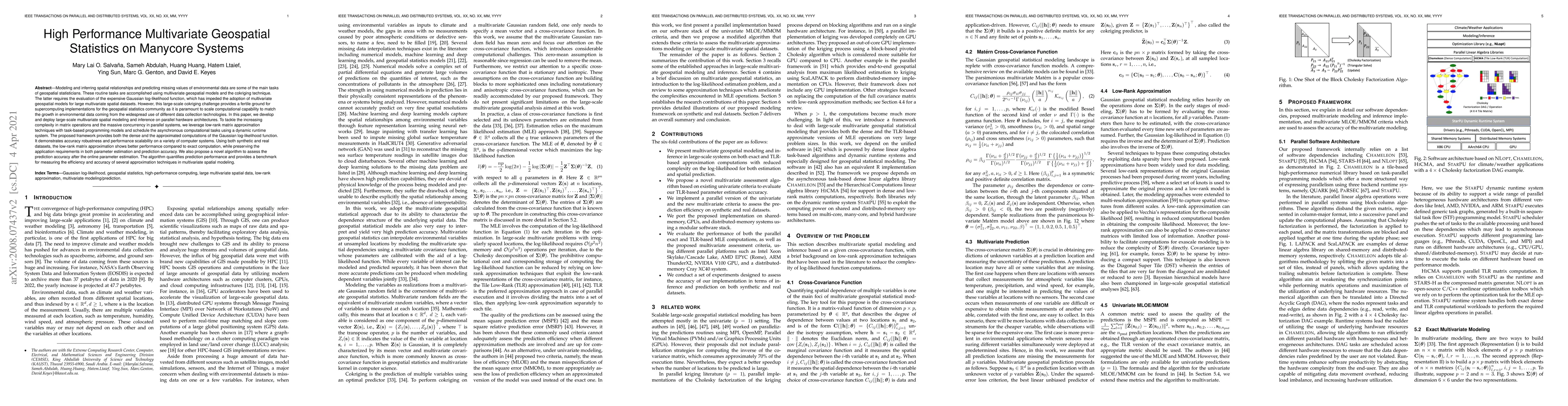 The paper presents a novel framework for high-performance multivariate geospatial statistics on manycore systems, leveraging low-rank matrix approximations, task-based programming models, and dynamic runtime systems.
