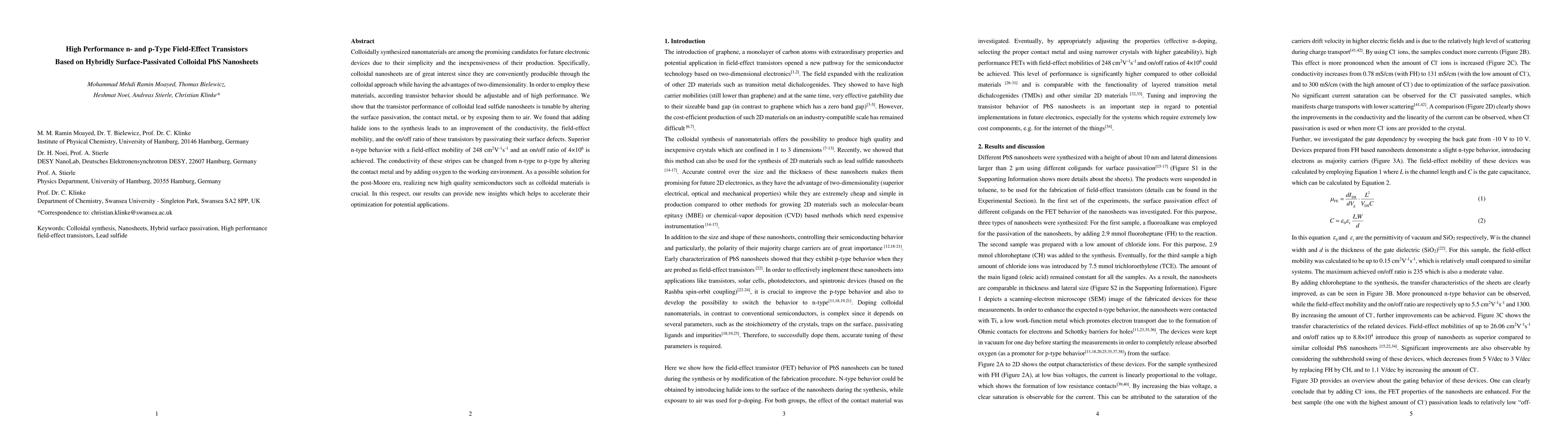 Researchers developed high-performance n-type and p-type field-effect transistors using colloidal lead sulfide nanosheets that can be tuned for optimal performance through surface passivation or contact metal changes.
