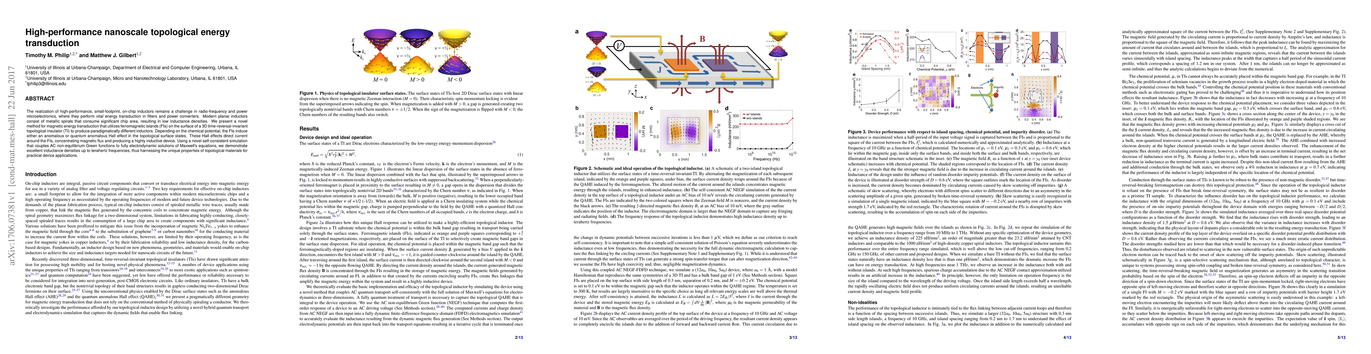 The realization of high-performance, small-footprint, on-chip inductors remains a challenge in radio-frequency and power microelectronics, where they perform vital energy transduction in filters and power converters. Modern planar inductors consist of metallic spirals that consume significant chip area, resulting in low inductance densities. We present a novel method for magnetic energy transduction that utilizes ferromagnetic islands (FIs) on the surface of a 3D time-reversal-invariant topological insulator (TI) to produce paradigmatically different inductors. Depending on the chemical potential, the FIs induce either an anomalous or quantum anomalous Hall effect in the topological surface states. These Hall effects direct current around the FIs, concentrating magnetic flux and producing a highly inductive device. Using a novel self-consistent simulation that couples AC non-equilibrium Green functions to fully electrodynamic solutions of Maxwell's equations, we demonstrate excellent inductance densities up to terahertz frequencies, thus harnessing the unique properties of topological materials for practical device applications.