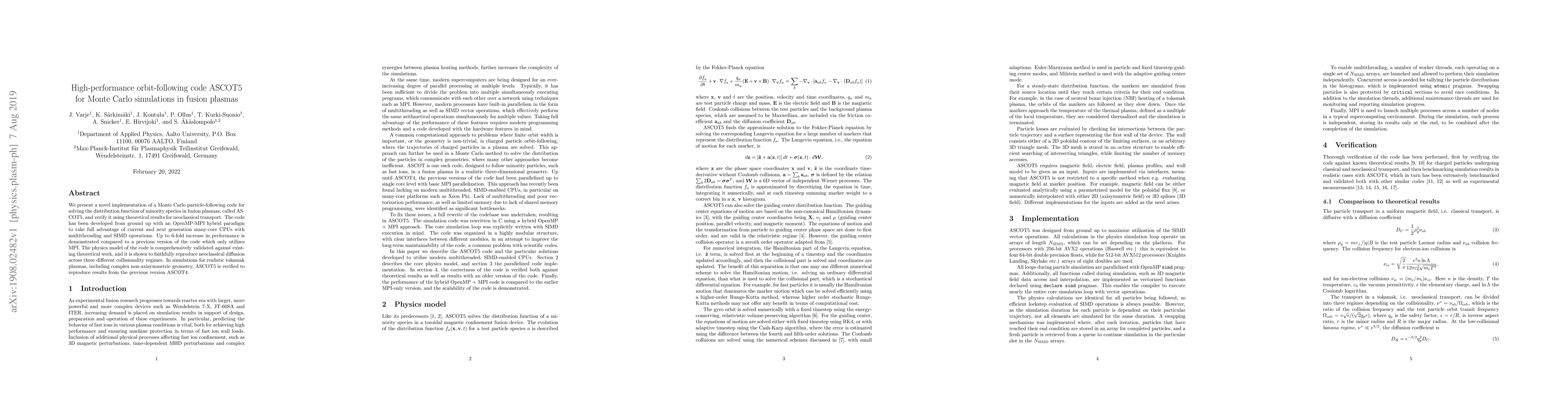 ASCOT5 is a new Monte Carlo particle-following code for simulating minority species in fusion plasmas, achieving up to 6-fold performance improvement over its predecessor through an OpenMP-MPI hybrid approach. The code's physics model is validated against theoretical results and accurately reproduces neoclassical transport across various collisionality regimes.