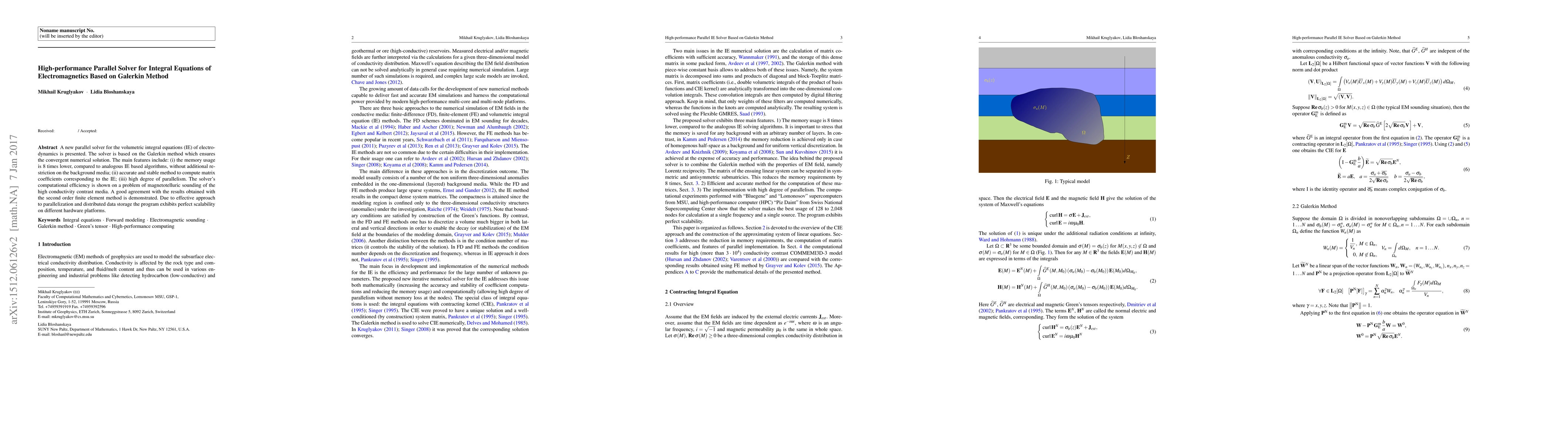 A new parallel solver for integral equations in electromagnetics uses the Galerkin method to achieve high performance and scalability, reducing memory usage by 8 times while maintaining accurate results.