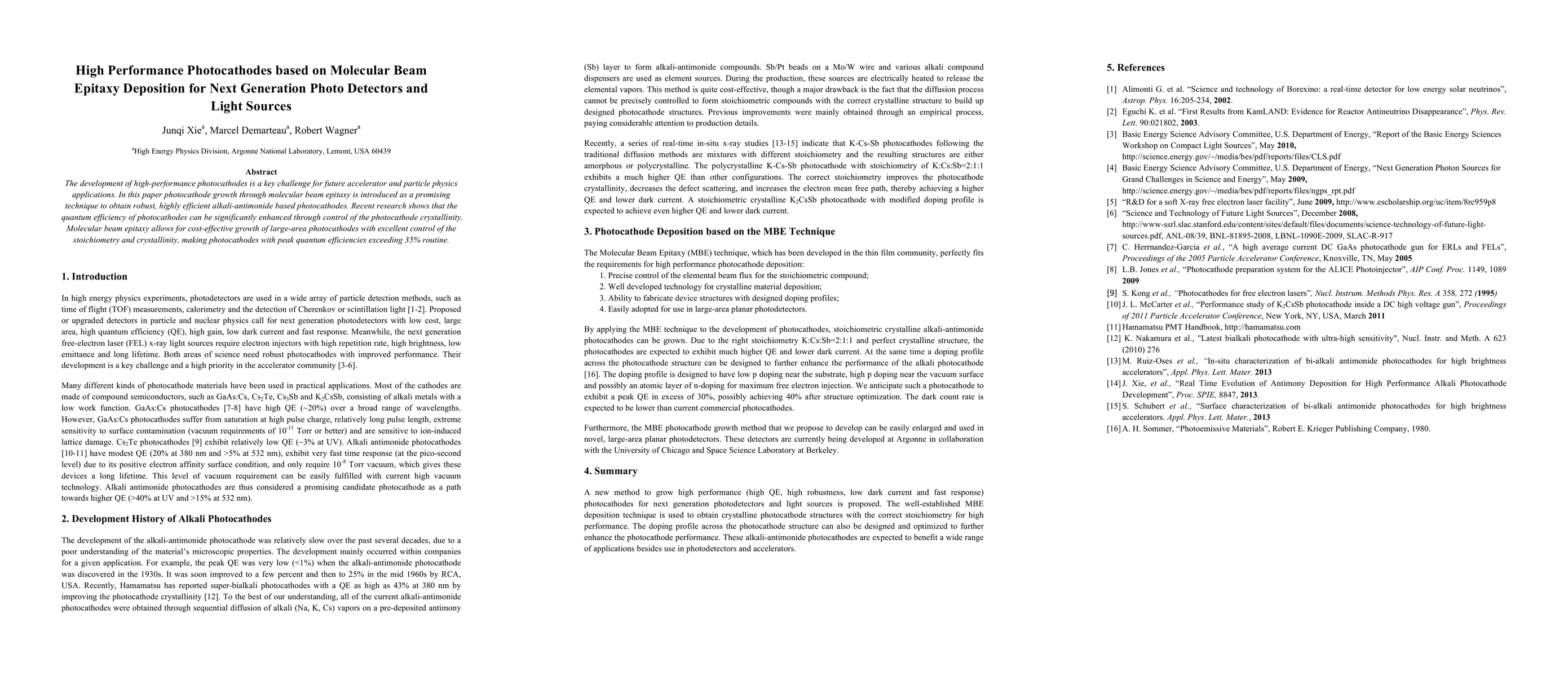 The development of high-performance photocathodes is a key challenge for future accelerator and particle physics applications. In this paper photocathode growth through molecular beam epitaxy is introduced as a promising technique to obtain robust, highly efficient alkali-antimonide based photocathodes. Recent research shows that the quantum efficiency of photocathodes can be significantly enhanced through control of the photocathode crystallinity. Molecular beam epitaxy allows for cost-effective growth of large-area photocathodes with excellent control of the stoichiometry and crystallinity, making photocathodes with peak quantum efficiencies exceeding 35% routine.
