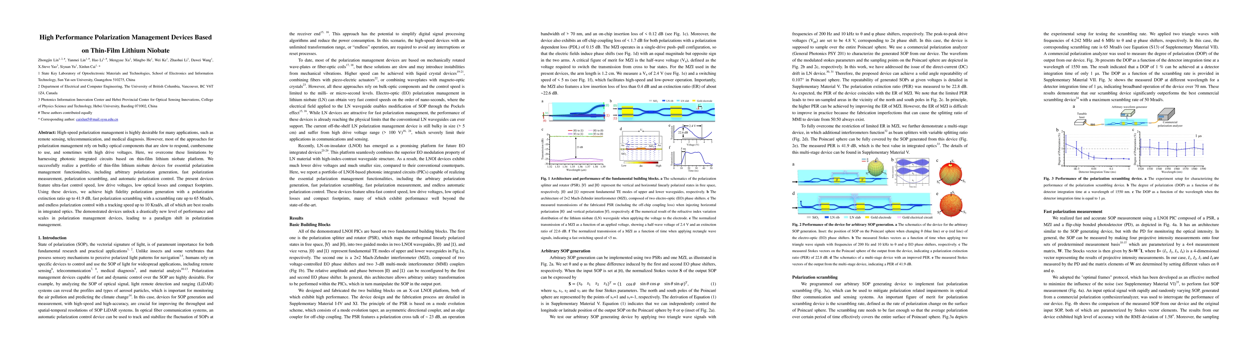 This paper presents high-performance polarization management devices based on thin-film lithium niobate photonic integrated circuits, achieving ultra-fast control speeds, low drive voltages, and compact designs, which significantly outperform traditional bulky optical components. The devices enable essential functionalities such as arbitrary polarization generation, fast measurement, scrambling, and control, setting new benchmarks in integrated optics.