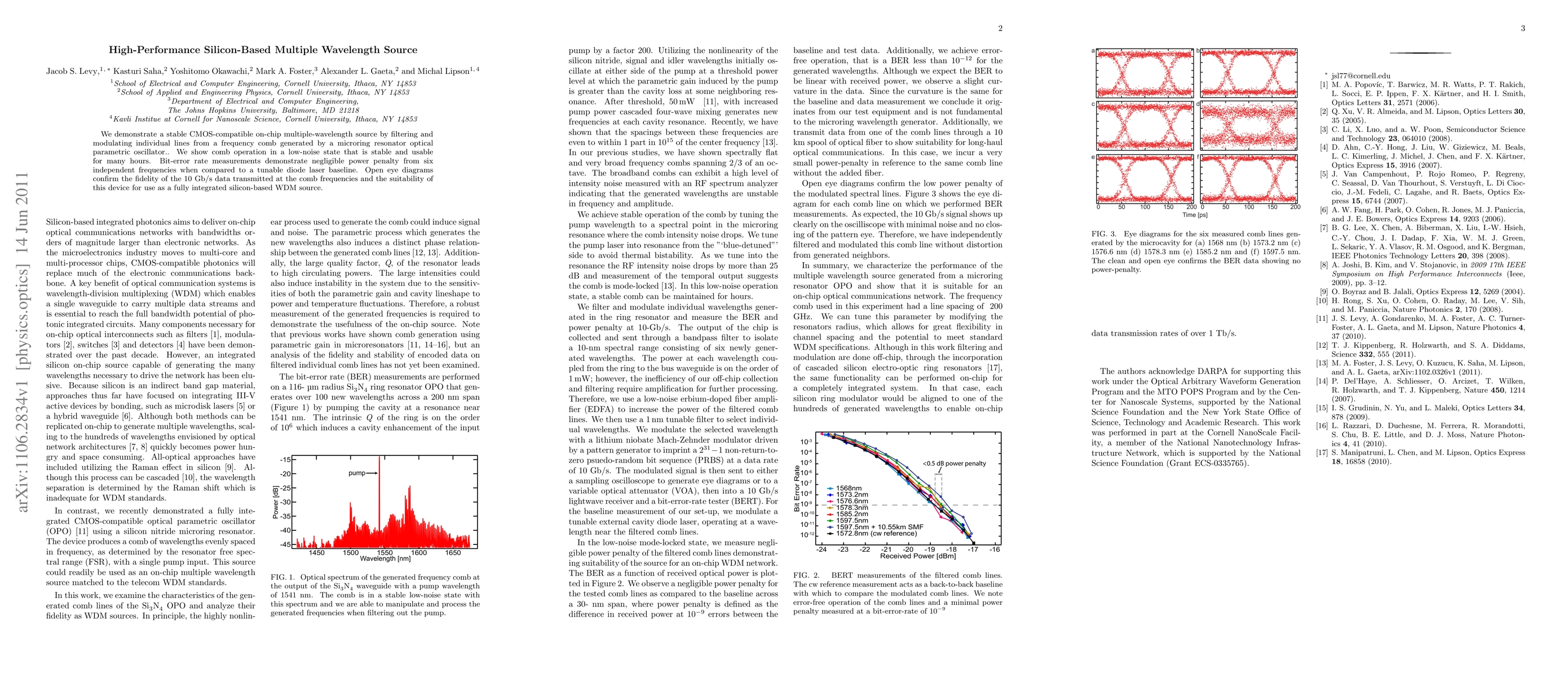 Researchers create a stable CMOS-compatible multiple-wavelength source using a microring resonator optical parametric oscillator, outperforming traditional diode lasers in terms of stability and power efficiency for high-speed data transmission.