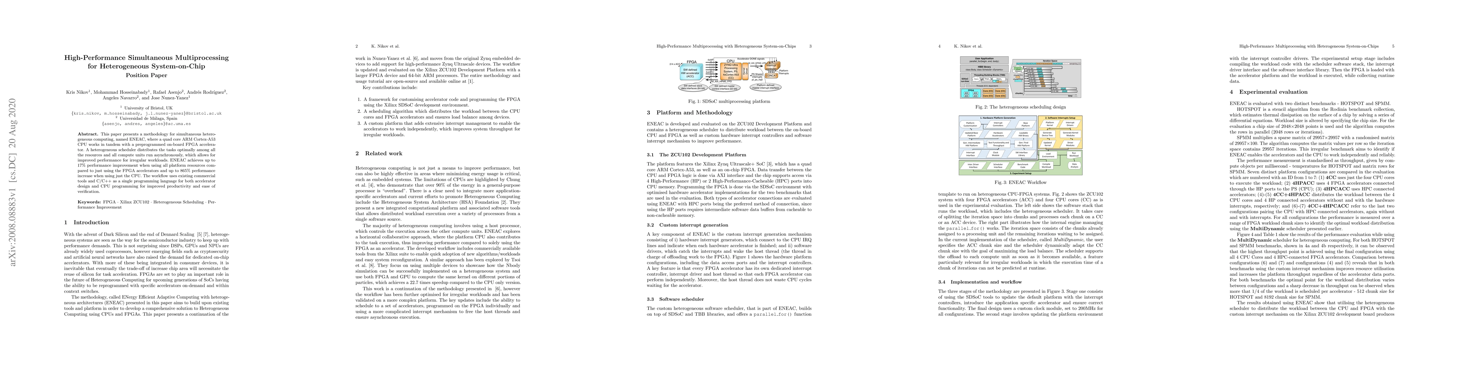 A new heterogeneous computing methodology, ENEAC, achieves up to 17% performance improvement for irregular workloads using a quad-core CPU and FPGA accelerator in tandem.