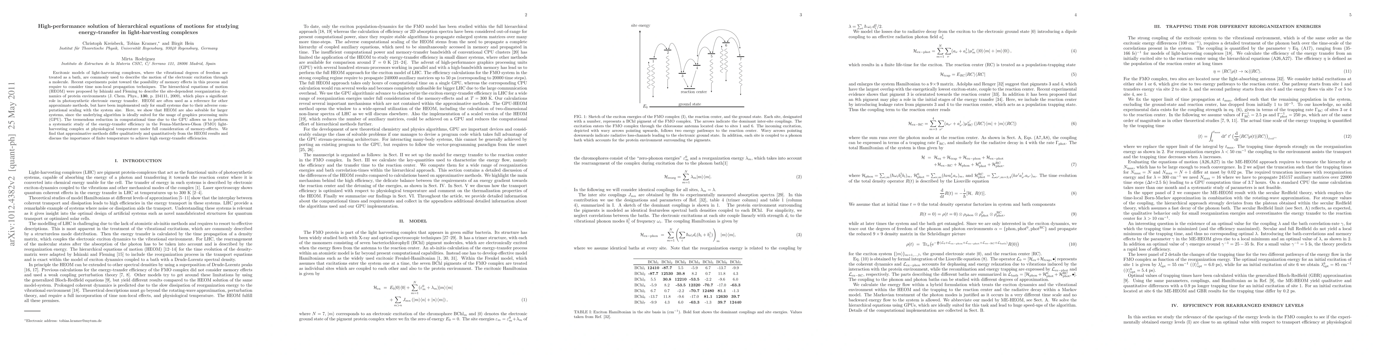 Researchers developed a more efficient method to study how energy is transferred in light-harvesting complexes using hierarchical equations of motion, allowing for larger systems to be analyzed and revealing the importance of temperature on efficiency.