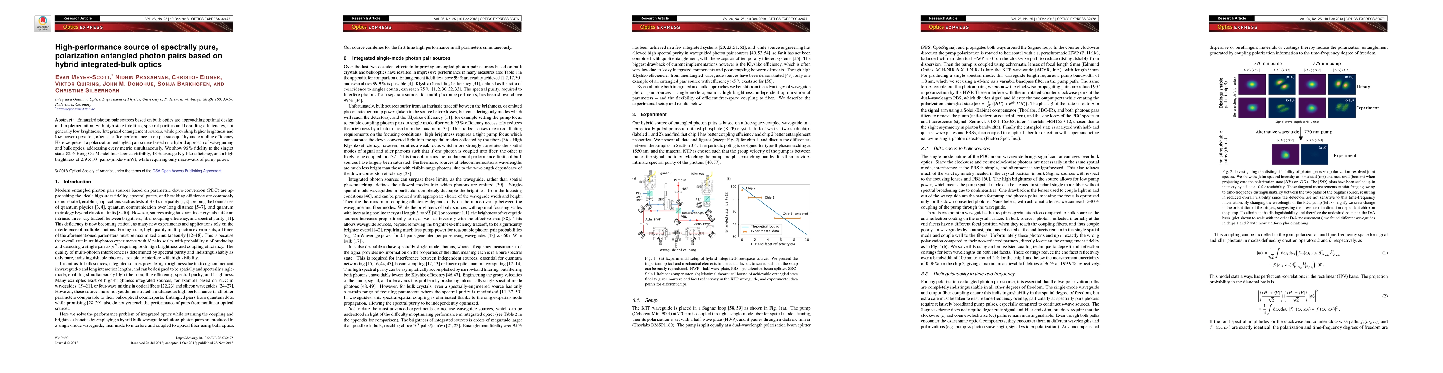 Entangled photon pair sources based on bulk optics are approaching optimal design and implementation, with high state fidelities, spectral purities and heralding efficiencies, but generally low brightness. Integrated entanglement sources, while providing higher brightness and low-power operation, often sacrifice performance in output state quality and coupling efficiency. Here we present a polarization-entangled pair source based on a hybrid approach of waveguiding and bulk optics, addressing every metric simultaneously. We show 96% fidelity to the singlet state, 82% Hong-Ou-Mandel interference visibility, 43% average Klyshko efficiency, and a high brightness of $2.9\times10^6$ pairs/(mode$\cdot$s$\cdot$mW), while requiring only microwatts of pump power.