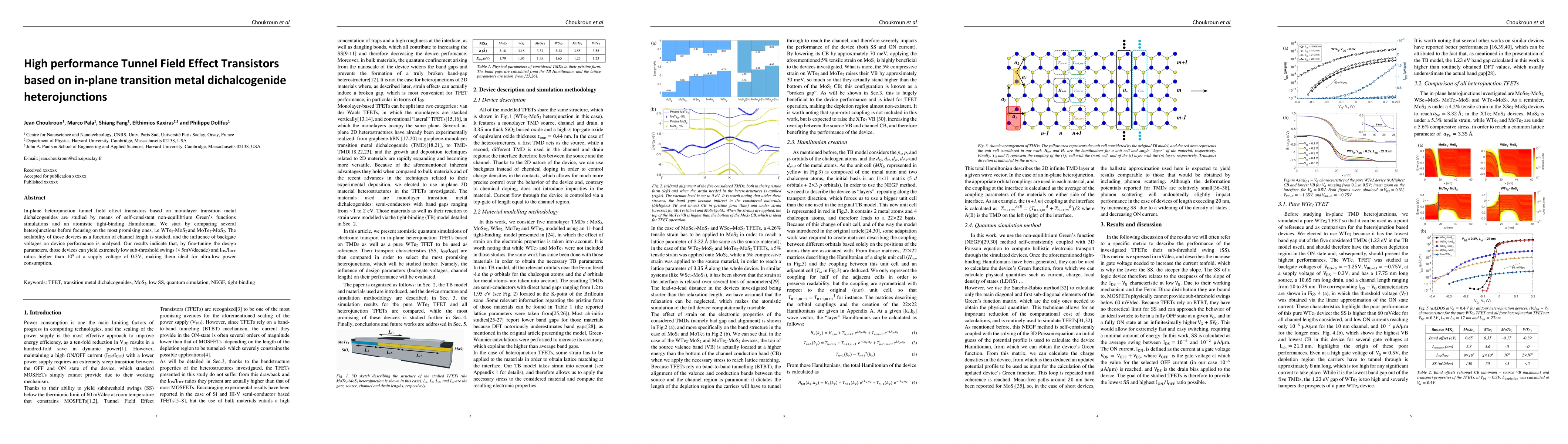 This study explores high-performance tunnel field effect transistors utilizing in-plane heterojunctions of monolayer transition metal dichalcogenides, particularly WTe2-MoS2 and MoTe2-MoS2. Simulations reveal these devices can achieve low sub-threshold swings and high Ion/Ioff ratios, making them suitable for ultra-low power applications.