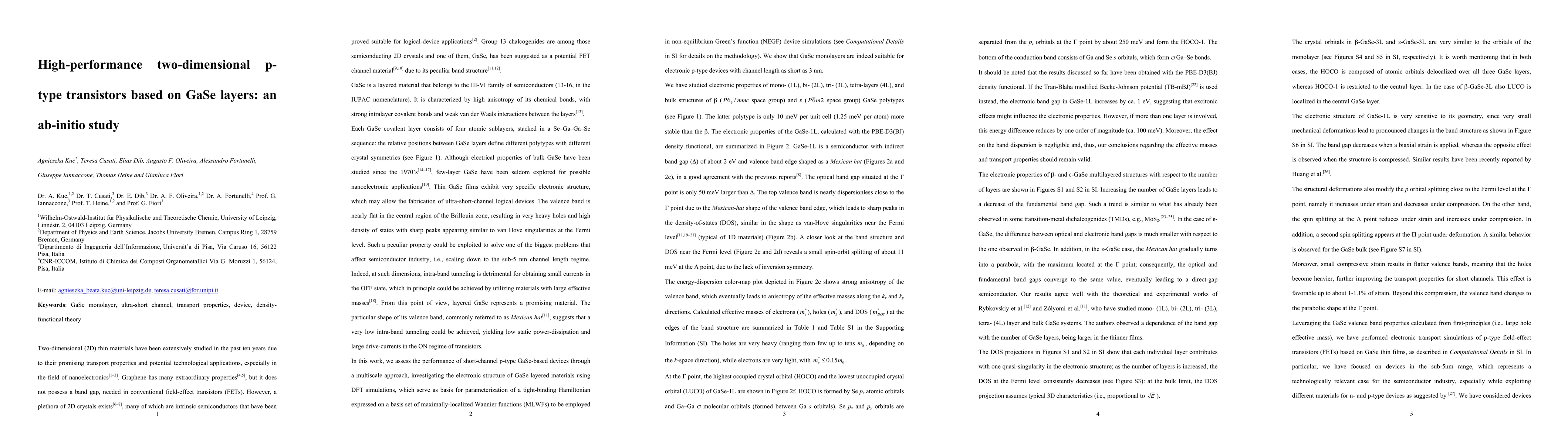 Ultrascaled GaSe field effect transistors are investigated through ab initio calculations. GaSe monolayers, 3 nm long, exhibit excellent performance with reduced short-channel effects and considerable high ON-current. Such device characteristics are due to the valence band edge shape, which leads to very heavy holes in the transport direction and eventually suppresses intraband tunneling, detrimental for correct operation in the OFF state.