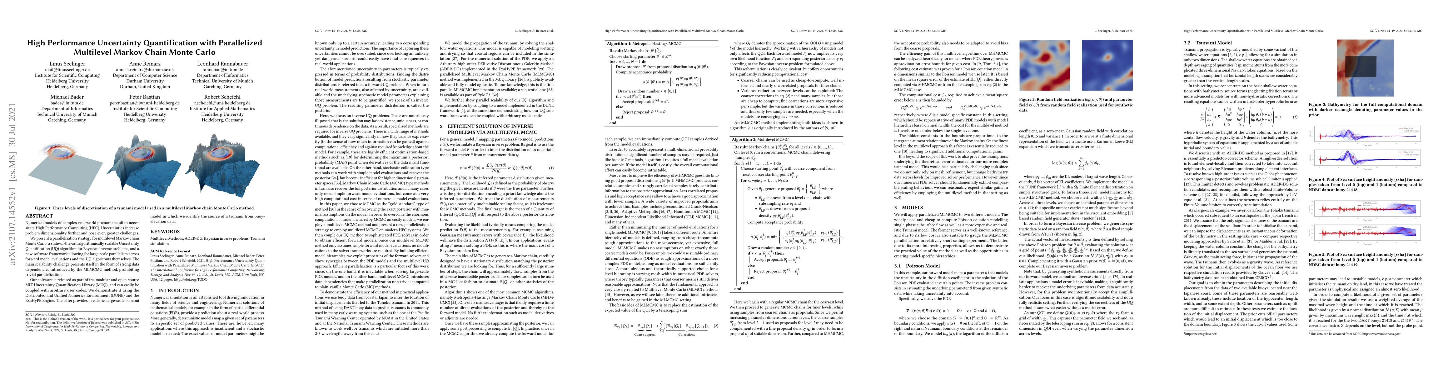 This paper presents a parallelized multilevel Markov chain Monte Carlo (MLMCMC) method for high-performance uncertainty quantification in complex numerical models, addressing strong data dependencies through a new software framework within the MIT UQ Library. The approach is demonstrated on a large-scale tsunami model using the ExaHyPE Engine.