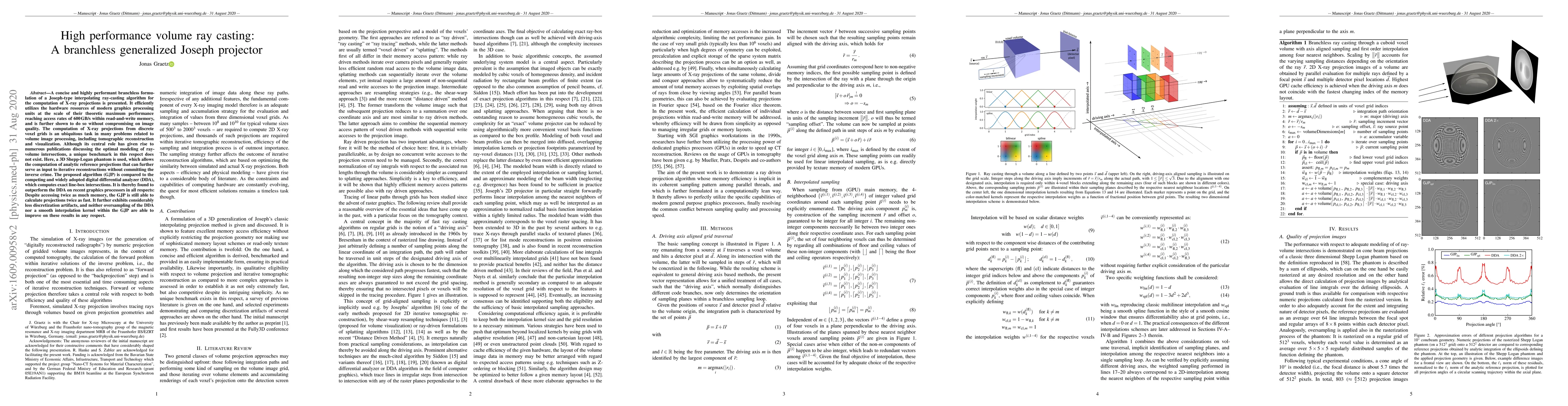A concise and highly performant branchless formulation of a Joseph-type interpolating ray-casting algorithm for the computation of X-ray projections is presented. It efficiently utilizes the hardware resources of modern graphics processing units at the scale of their theoretic maximum performance reaching access rates of 600 GB/s within read-and-write memory, and is further shown to do so without compromising on image quality. The computation of X-ray projections from discrete voxel grids is an ubiquitous task in many problems related to volume image processing, including tomographic reconstruction and visualization. Although its central role has given rise to numerous publications discussing the optimal modeling of ray-volume intersections, a unique benchmark in this respect does not exist. Here, a 3D Shepp-Logan phantom is used, which allows the computation of analytic reference projections that can further serve as input to iterative reconstructions without committing the inverse crime. The proposed algorithm (GJP) is compared to the competing and widely adopted digital differential analyzer (DDA), which computes exact line-box intersections. It is thereby found to outperform the DDA on recent graphics processors in all respects: Despite accessing twice as much memory, the GJP is still able to calculate projections twice as fast. It further exhibits considerably less discretization artifacts, and neither oversampling of the DDA nor a smooth interpolation kernel within the GJP are able to improve on these results in any respect.