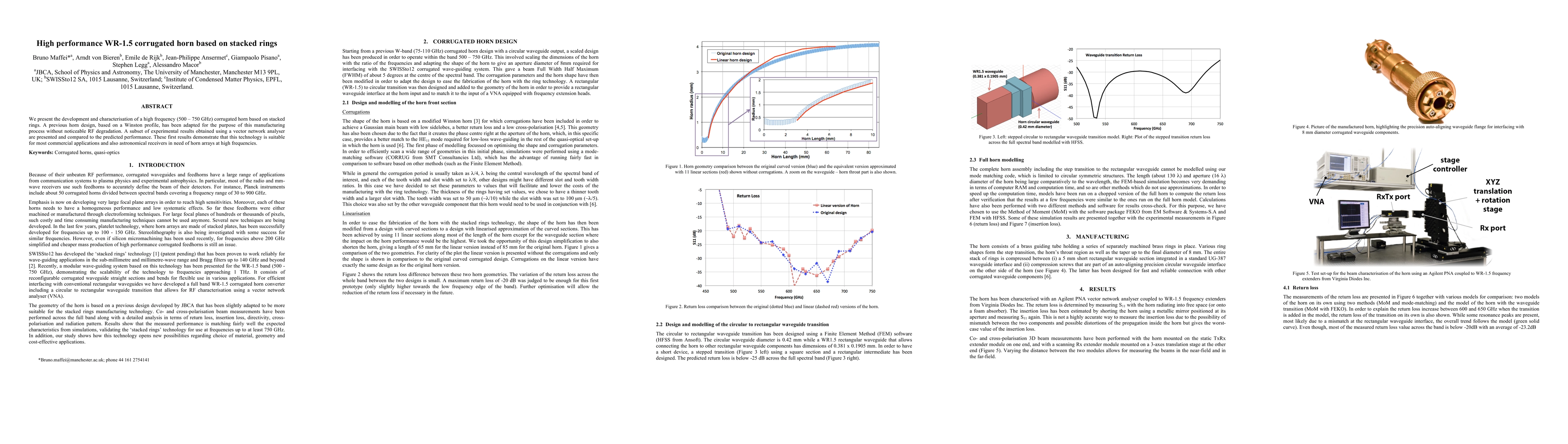 Researchers developed a high-performance corrugated horn for 500-750 GHz frequencies using stacked rings, demonstrating its suitability for commercial applications and astronomical receivers.