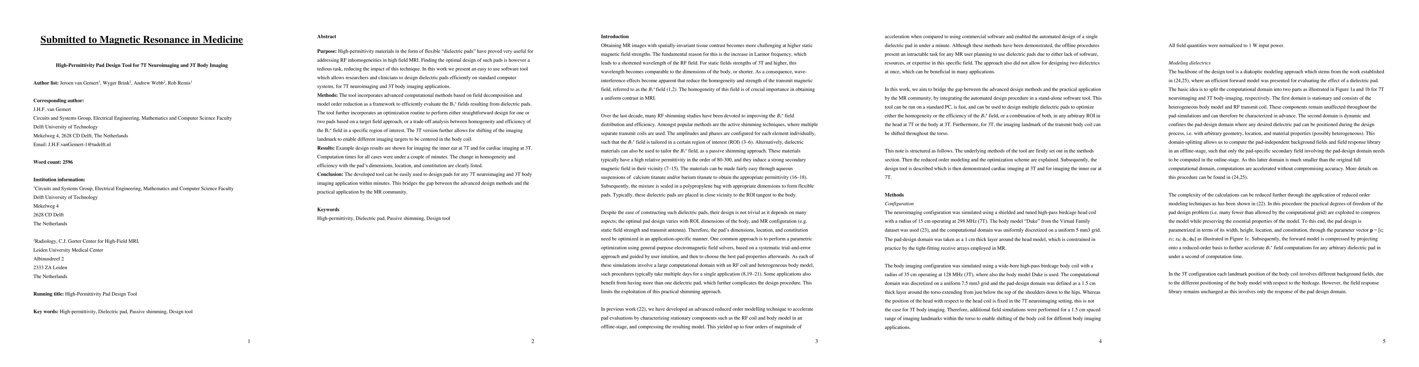 A software tool has been developed to design high-permittivity pads for MRI imaging in 7T neuroimaging and 3T body imaging, allowing efficient evaluation of B1+ fields and optimization of pad design within minutes.