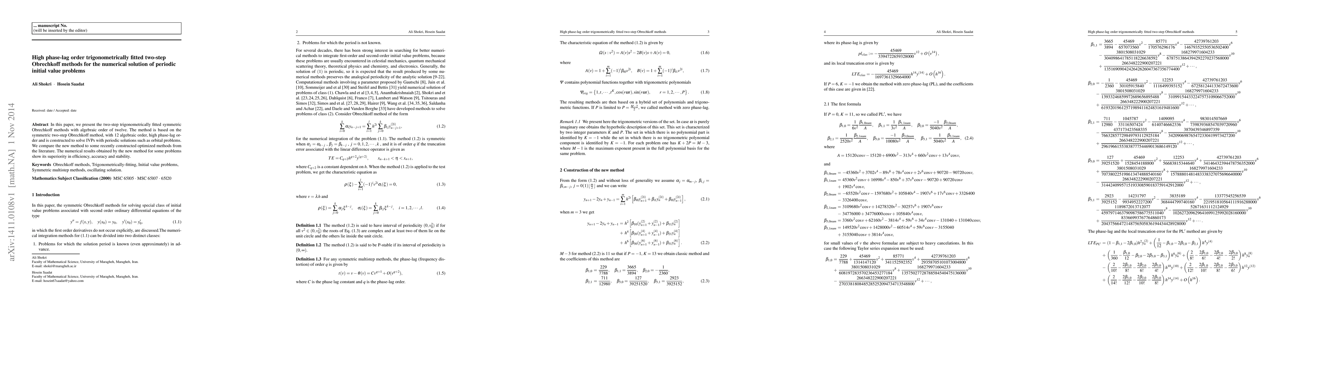 In this paper, we present the two-step trigonometrically fitted symmetric Obrechkoff methods with algebraic order of twelve. The method is based on the symmetric two-step Obrechkoff method, with 12 algebraic order, high phase-lag order and is constructed to solve IVPs with periodic solutions such as orbital problems. We compare the new method to some recently constructed optimized methods from the literature. The numerical results obtained by the new method for some problems show its superiority in efficiency, accuracy and stability.