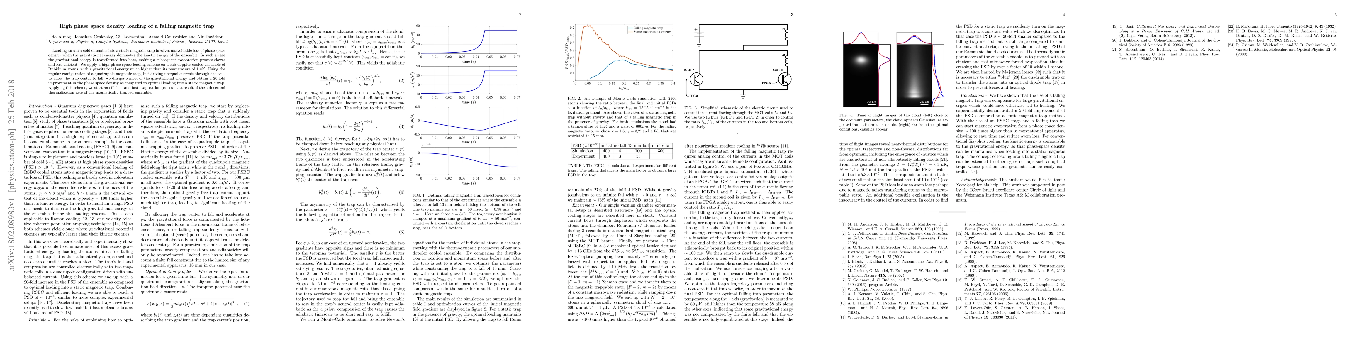 This research presents a high phase space density loading method for an ultra-cold ensemble of Rubidium atoms into a falling magnetic trap, achieving a 20-fold improvement over traditional static trap loading. The scheme effectively dissipates gravitational energy, enhancing the efficiency of subsequent evaporation processes.