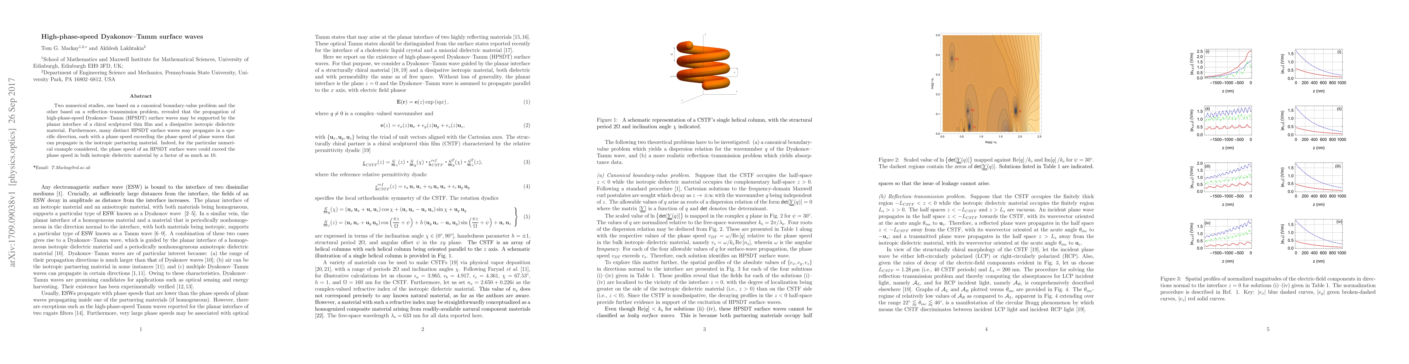 Two numerical studies, one based on a canonical boundary-value problem and the other based on a reflection-transmission problem, revealed that the propagation of high-phase-speed Dyakonov-Tamm (HPSDT) surface waves may be supported by the planar interface of a chiral sculptured thin film and a dissipative isotropic dielectric material. Furthermore, many distinct HPSDT surface waves may propagate in a specific direction, each with a phase speed exceeding the phase speed of plane waves that can propagate in the isotropic partnering material. Indeed, for the particular numerical example considered, the phase speed of an HPSDT surface wave could exceed the phase speed in bulk isotropic dielectric material by a factor of as much as 10.