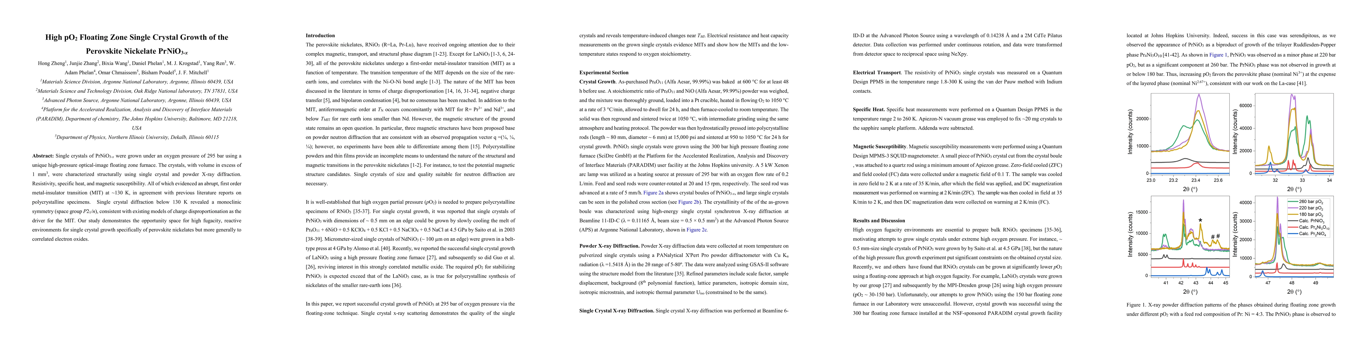 Researchers successfully grew single crystals of PrNiO3 under high oxygen pressure, revealing a first-order metal-insulator transition at 130K, with implications for the growth of correlated electron oxides.
