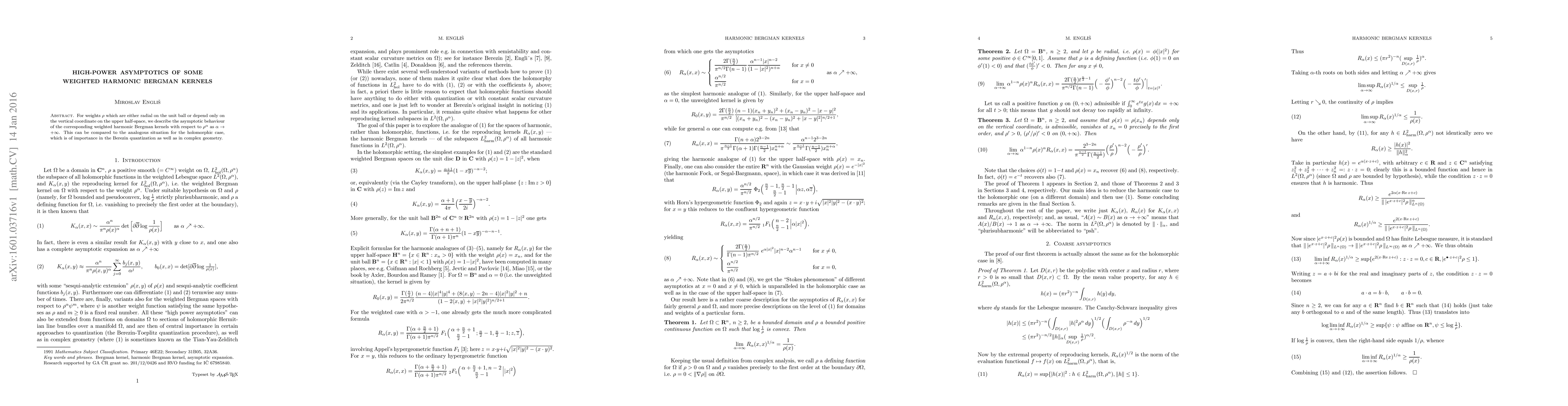 For~weights $\rho$ which are either radial on the unit ball or depend only on the vertical coordinate on the upper half-space, we describe the asymptotic behaviour of the corresponding weighted harmonic Bergman kernels with respect to $\rho^\alpha$ as $\alpha\to+\infty$. This can be compared to the analogous situation for the holomorphic case, which is of importance in the Berezin quantization as well as in complex geometry.