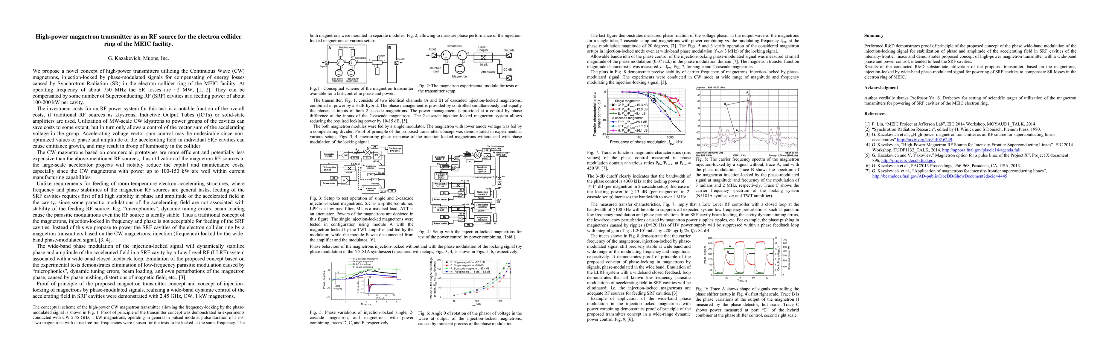 A novel magnetron transmitter design can compensate for energy losses in an electron collider ring, reducing SR losses from 2 MW to manageable levels via SRF cavities.