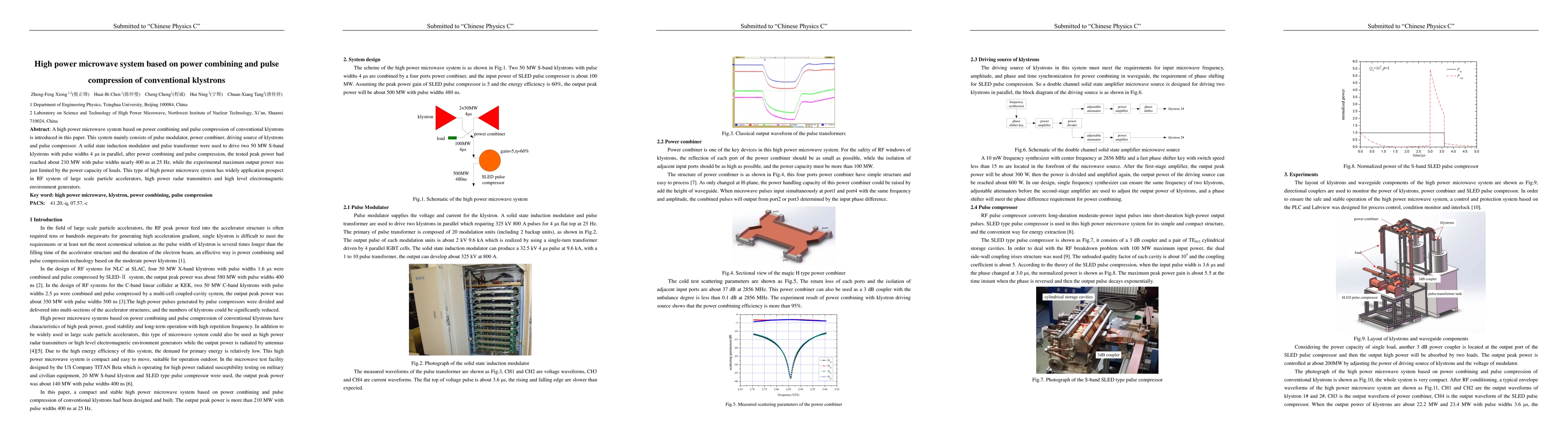 This paper introduces a high power microwave system that combines and compresses the output of conventional klystrons, achieving a peak power of 210 MW with 400 ns pulse widths. The system has potential applications in large-scale particle accelerators, radar transmitters, and electromagnetic environment generators.