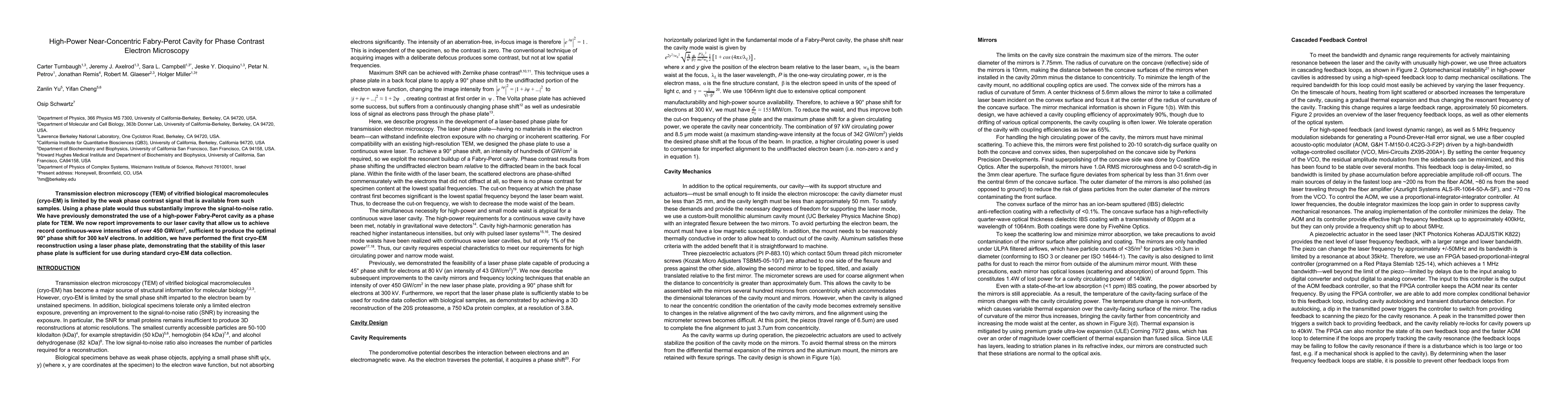This paper reports enhancements to a high-power Fabry-Perot cavity used as a phase plate in transmission electron microscopy, achieving record intensities of over 450 GW/cm², and successfully performing the first cryo-EM reconstruction, proving the stability of the laser phase plate for standard data collection.