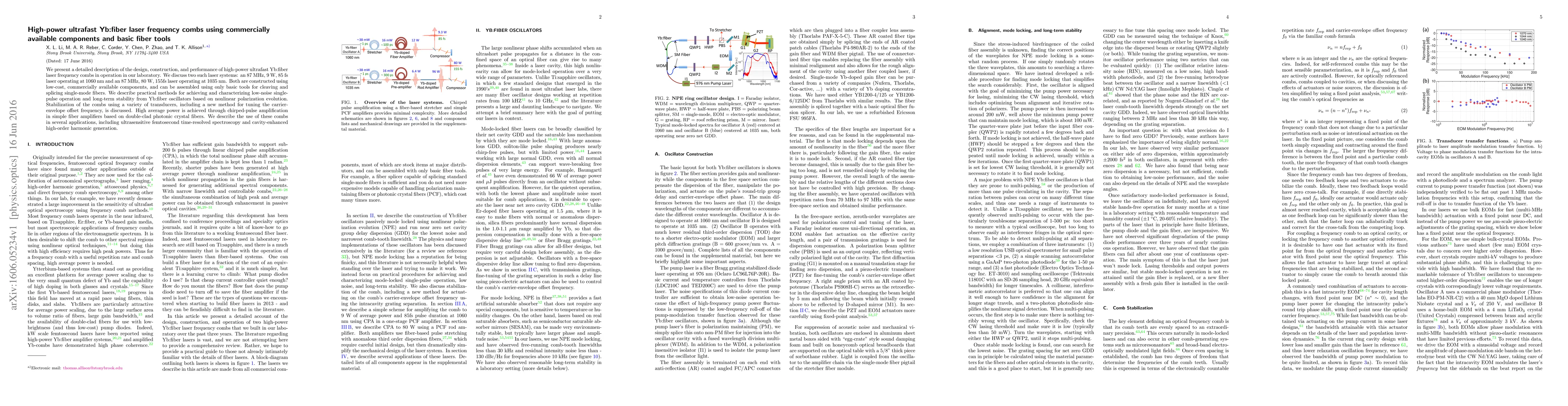 This paper details the design and construction of two high-power ultrafast Yb:fiber laser frequency combs using commercially available components and basic fiber tools, achieving 9 W at 1060 nm and 80 W at 1035 nm. The systems achieve long-term stability and low-noise operation through practical methods and are suitable for advanced applications like ultrasensitive spectroscopy and harmonic generation.