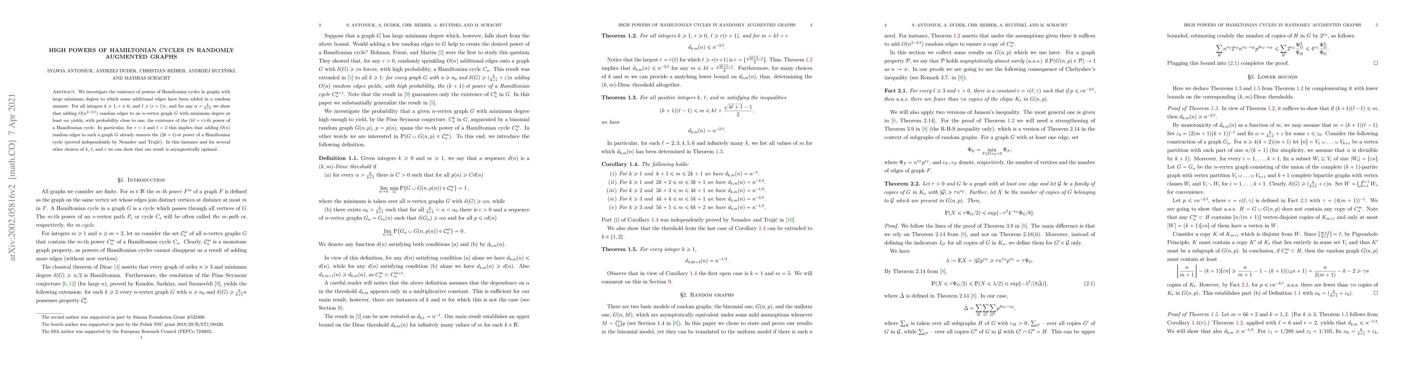 We investigate the existence of powers of Hamiltonian cycles in graphs with large minimum degree to which some additional edges have been added in a random manner. For all integers $k\geq1$, $r\geq 0$, and $\ell\geq (r+1)r$, and for any $\alpha>\frac{k}{k+1}$ we show that adding $O(n^{2-2/\ell})$ random edges to an $n$-vertex graph $G$ with minimum degree at least $\alpha n$ yields, with probability close to one, the existence of the $(k\ell+r)$-th power of a Hamiltonian cycle. In particular, for $r=1$ and $\ell=2$ this implies that adding $O(n)$ random edges to such a graph $G$ already ensures the $(2k+1)$-st power of a Hamiltonian cycle (proved independently by Nenadov and Truji\'c). In this instance and for several other choices of $k$, $\ell$, and $r$ we can show that our result is asymptotically optimal.