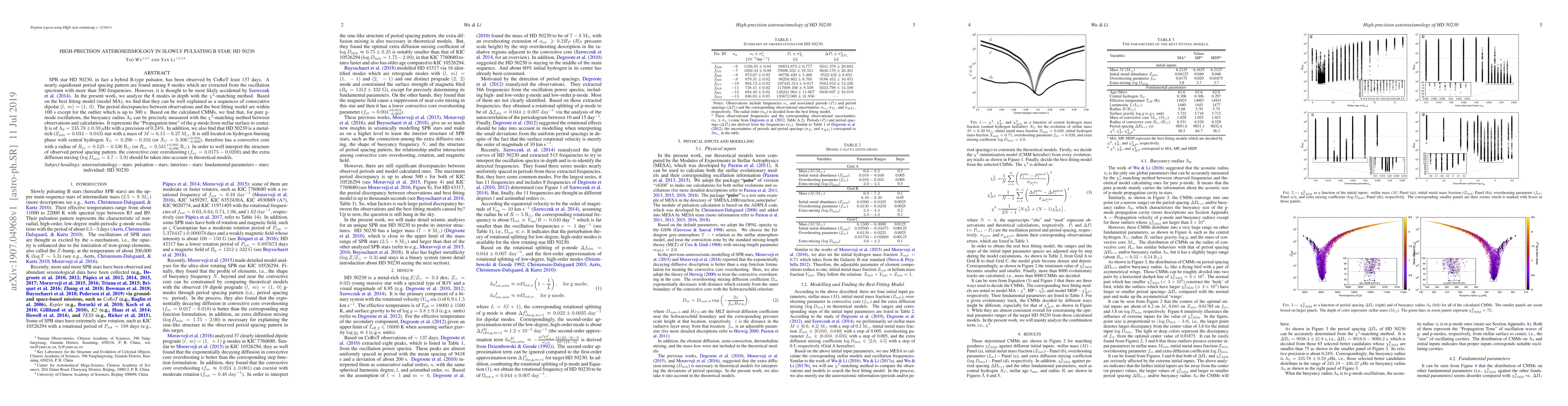 SPB star HD 50230, in fact a hybrid B-type pulsator, has been observed by CoRoT least 137 days. A nearly equidistant period spacing pattern are found among 8 modes which are extracted from the oscillation spectrum with more than 500 frequencies. However, it is thought to be most likely accidental by Szewczuk et al. (2014). In the present work, we analyze the 8 modes in depth with the $\chi^2$-matching method. Based on the best fitting model (model MA), we find that they can be well explained as a sequences of consecutive dipolar $(l,~m)=(1,~0)$. The period discrepancies between observations and the best fitting model are within 100 s except for the outlier which is up to 300 s. Based on the calculated CMMs, we find that, for pure g-mode oscillations, the buoyancy radius $\Lambda_{0}$ can be precisely measured with the $\chi^2$-matching method between observations and calculations. It represents the "Propagation time" of the g-mode from stellar surface to center. It is of $\Lambda_{0}=245.78\pm0.59~\mu$Hz with a precision of 0.24\%. In addition, we also find that HD 50230 is a metal-rich ($Z_{\rm init}=0.034-0.043$) star with a mass of $M=6.15-6.27~{\rm M_{\odot}}$. It is still located on hydrogen-burning phase with central hydrogen $X_{\rm C}=0.298-0.316$ (or $X_{\rm C}=0.306^{+0.010}_{-0.008}$), therefore has a convective core with a radius of $R_{\rm cc}=0.525-0.536~{\rm R_{\odot}}$ (or $R_{\rm cc}=0.531^{+0.005}_{-0.006}~{\rm R_{\odot}}$). In order to well interpret the structure of observed period spacing pattern, the convective core overshooting ($f_{\rm ov}=0.0175-0.0200$) and the extra diffusion mixing ($\log D_{\rm mix}=3.7-3.9$) should be taken into account in theoretical models.