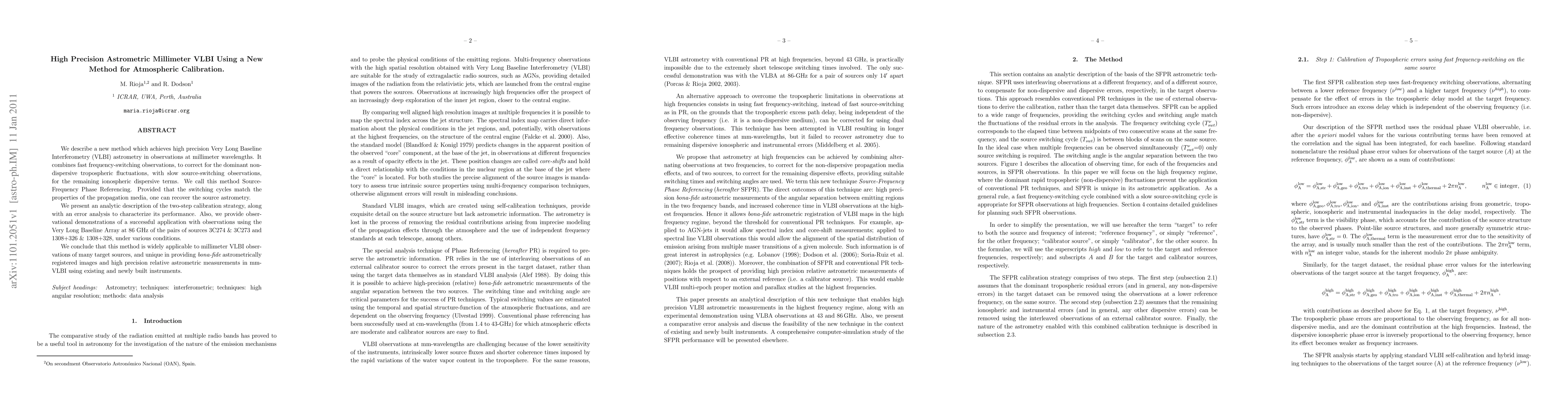 This paper introduces Source-Frequency Phase Referencing, a new method for high precision millimeter VLBI astrometry that combines fast frequency-switching and slow source-switching to correct atmospheric effects. The method is demonstrated to provide accurate astrometric measurements and is applicable to various millimeter VLBI observations.