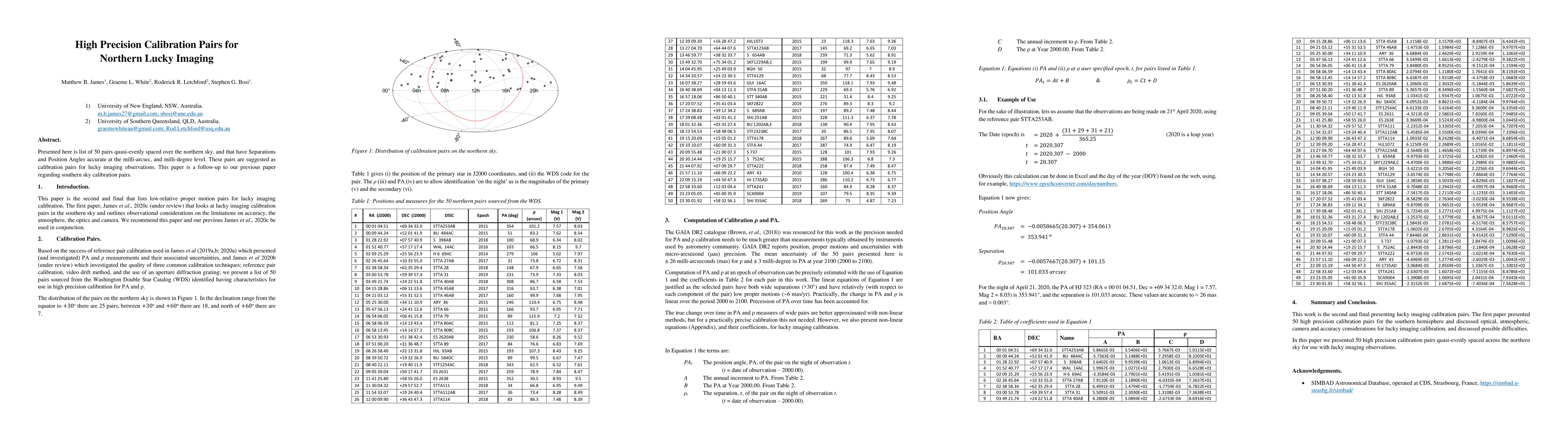 Researchers present 50 calibration pairs for lucky imaging observations in the northern sky with high precision separations and position angles. These pairs can aid in accurate telescope alignment and improve image quality.