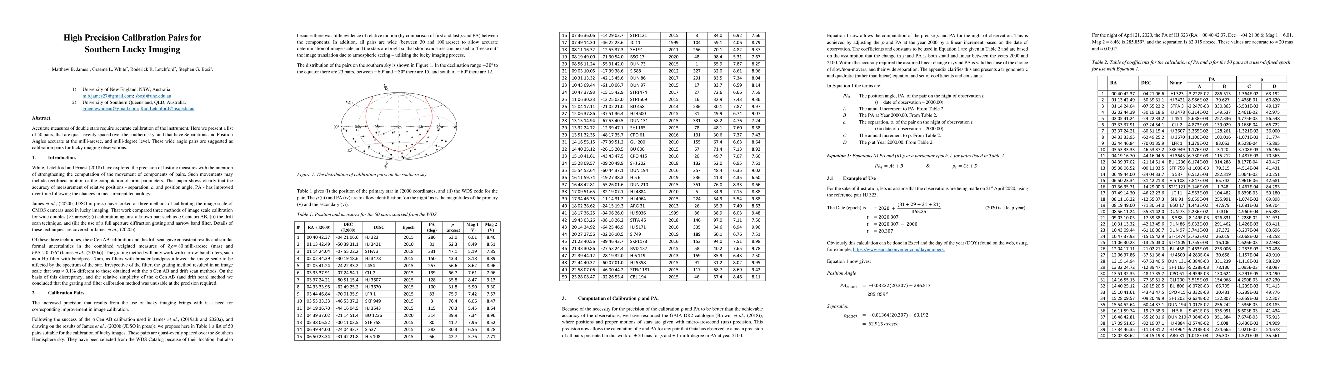Accurate measures of double stars require accurate calibration of the instrument. Here we present a list of 50 pairs, that are quasi-evenly spaced over the southern sky, and that have Separations and Position Angles accurate at the milli-arcsec, and milli-degree level. These wide angle pairs are suggested as calibration pairs for lucky imaging observations.