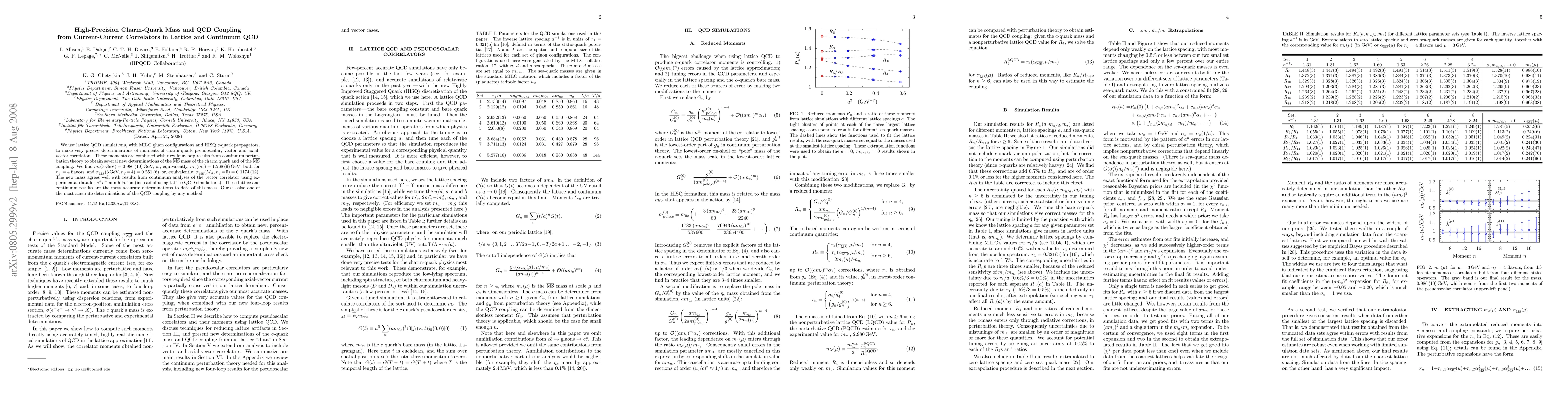 We use lattice QCD simulations, with MILC gluon configurations and HISQ c-quark propagators, to make very precise determinations of moments of charm-quark pseudoscalar, vector and axial-vector correlators. These moments are combined with new four-loop results from continuum perturbation theory to obtain several new determinations of the MSbar mass of the charm quark and of the MSbar coupling. We find m_c(3GeV)=0.986(10)GeV, or, equivalently, m_c(m_c)=1.268(9)GeV, both for n_f=4 flavors; and alpha_msb(3GeV,n_f=4)=0.251(6), or, equivalently, alpha_\msb(M_Z,n_f=5)=0.1174(12). The new mass agrees well with results from continuum analyses of the vector correlator using experimental data for e+e- annihilation (instead of using lattice QCD simulations). These lattice and continuum results are the most accurate determinations to date of this mass. Ours is also one of the most accurate determinations of the QCD coupling by any method.